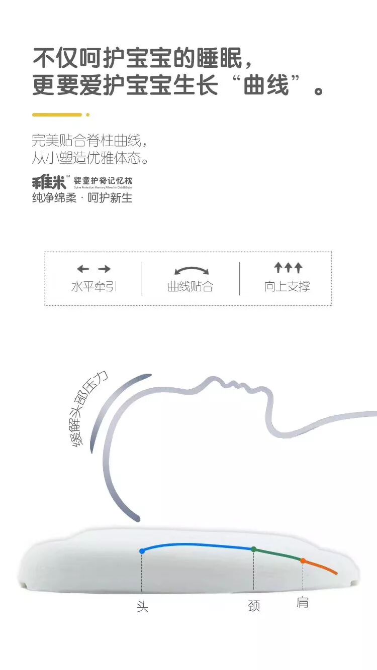 加长枕面+无拉链设计,让宝宝随心、 贴合婴童肩颈胸部曲线,助力智力和体格良好发育