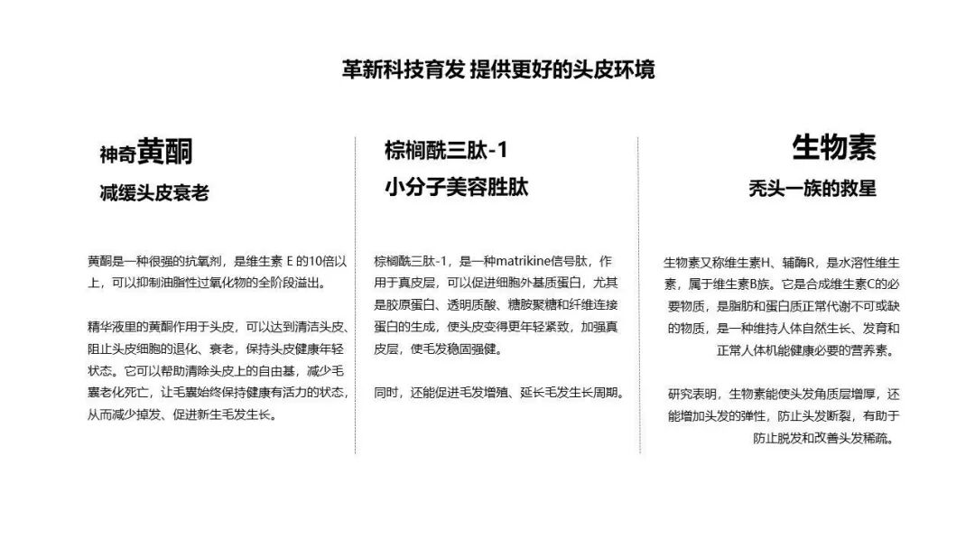 特别添加肽、黄酮、生物素等成分,激活毛囊二次发育,有效促进头发基质细胞生长,头发新生。