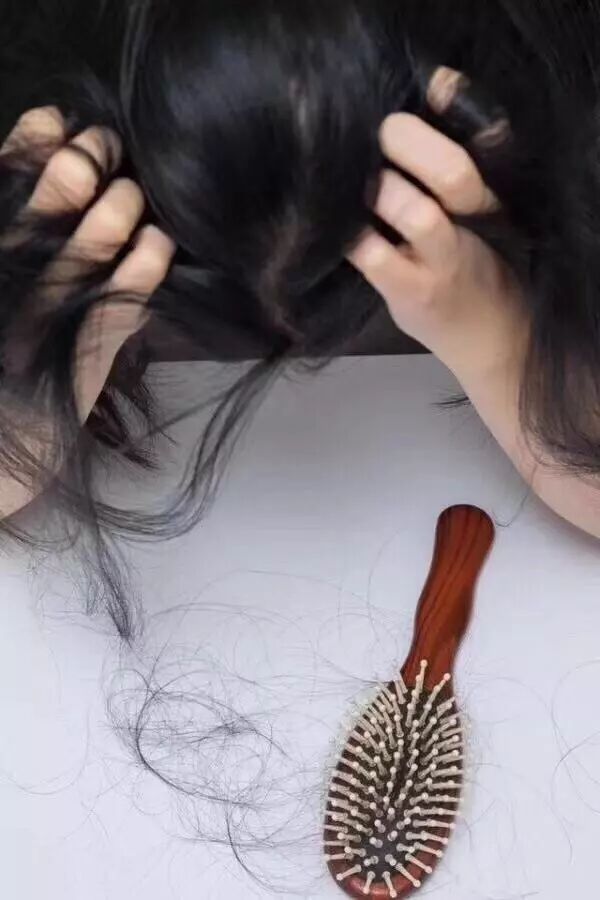 ▶每天开始大把大把掉头发,脑袋上头发越来越脆弱稀疏,发际线逐渐开启了「置顶」模式,梳子上、镜子前、地板上却布满了一个个黑圈圈......
