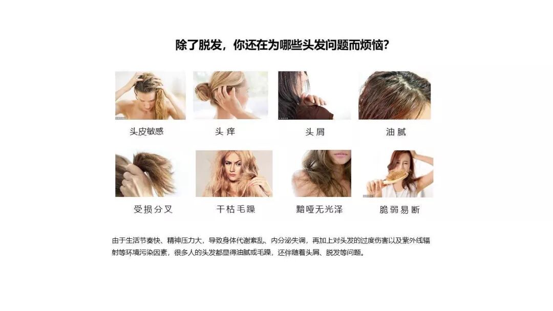 2013年一份关于我国六大城市近5000人的调查数据显示,45%的人都被脱发问题所困扰,有头屑的人高达41%,有32%的男性及36%的女性存在敏感性头皮的问题。
