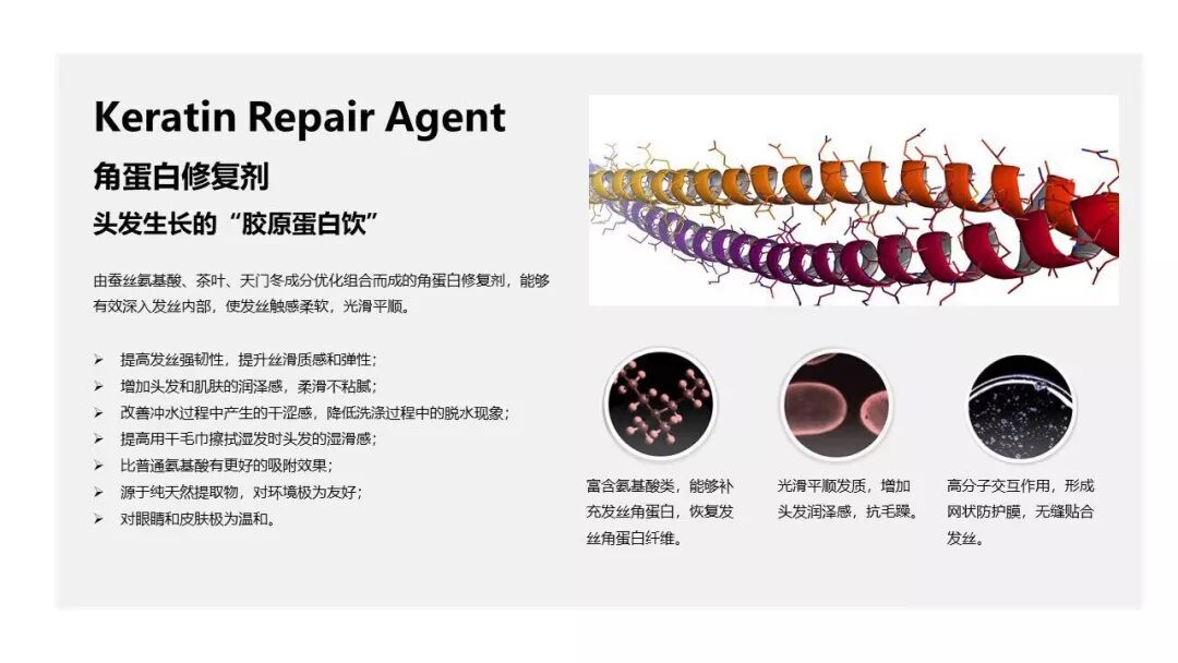 在清洁清爽的头皮基础上,温和滋养头发,修复受损发质,强壮发丝、营养发根,激发假死毛囊营养供给力,促进营养吸收,使头发健康强韧不易脱落。