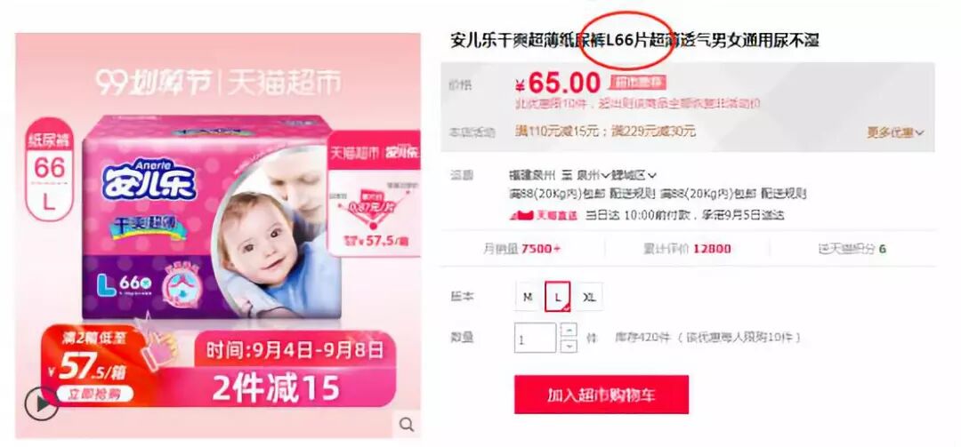 在母婴用品的电商争夺战中,纸尿裤活动尤其让人看得眼花缭乱。商家们为了吸引流量,首图费尽心思地表达自家产品的卖点,其中最让人移不开眼球的,大多是图片上几行醒目的大写加粗体:“低至0.X元/片”、“补贴百亿”、“XX元起”等等。