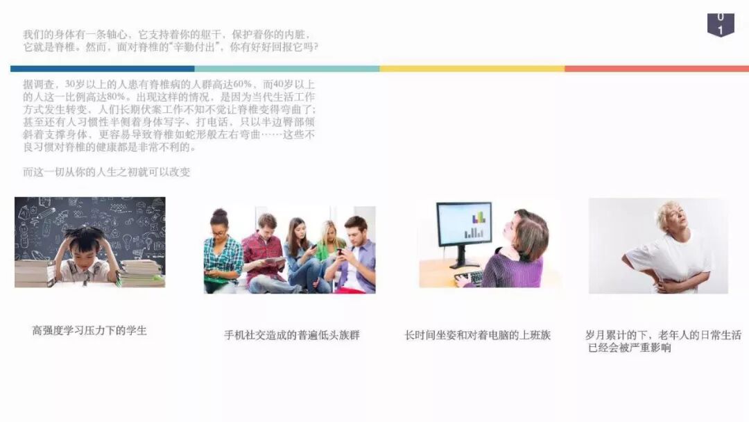 脊椎是身体的一条轴心,支撑着躯体,保护内脏。据调查30岁以上患有脊椎病的人群高达60%,而40岁以上的高达80%,出现这样的情况是因为当代工作、生活方式发生改变。长期伏案工作导致脊椎发生蛇形般弯曲。