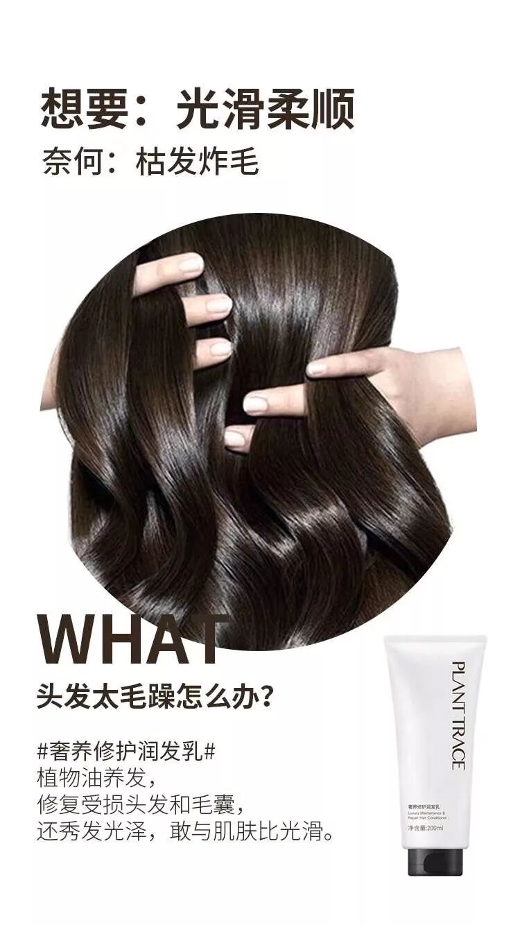②护发素:改善营养供给,从源头恢复受损,发质,强韧发芯,重建头发屏障功能,减少脱发断发。