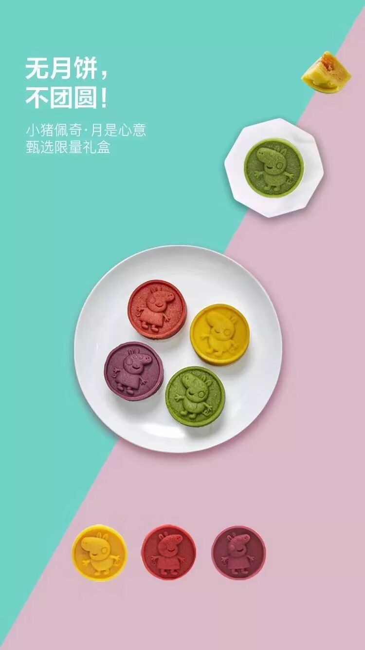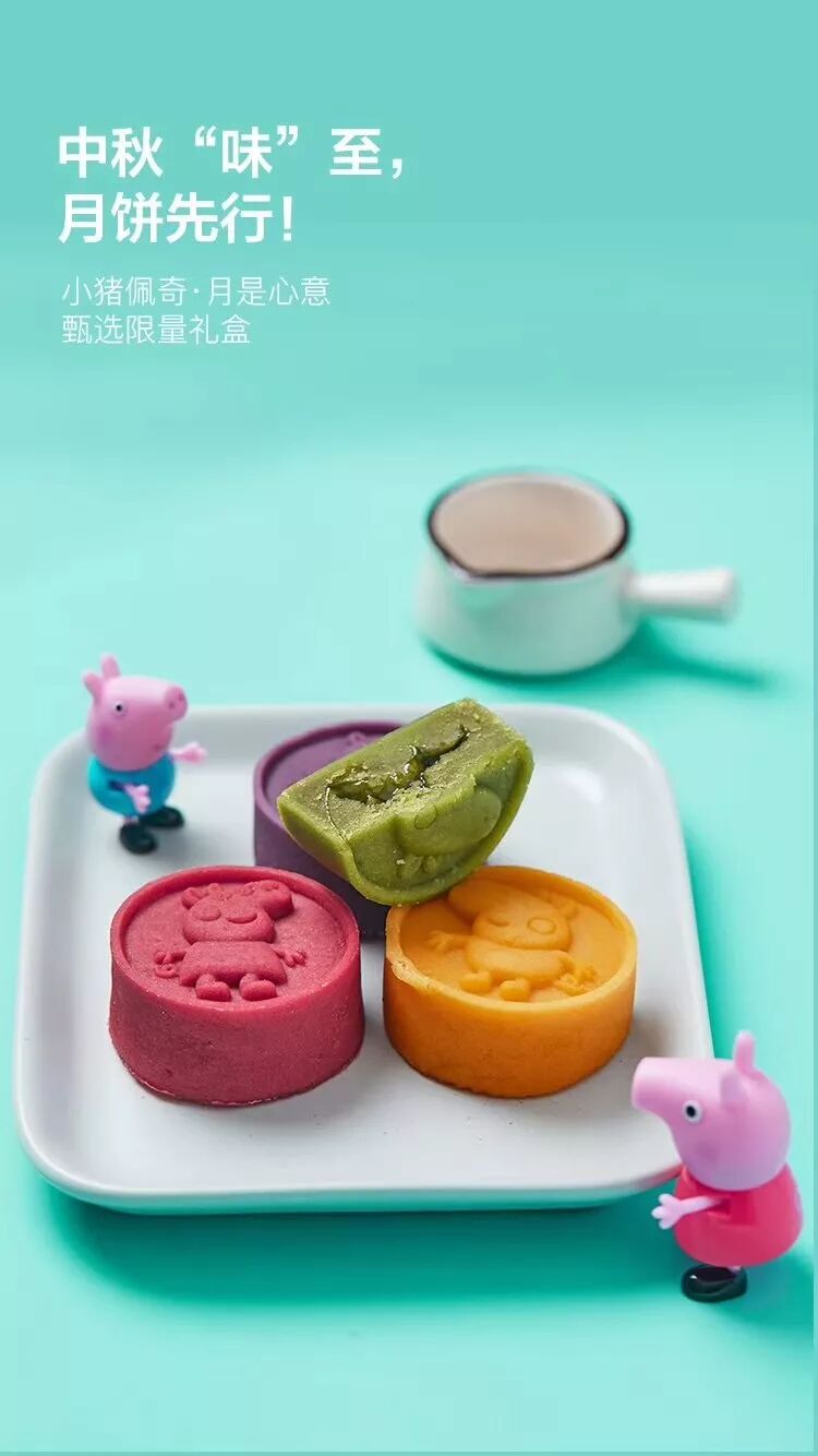 圆月里的“小猪佩奇” !红酒蔓越莓、紫薯、芒果流心、抹茶流心,拥有不同的色彩,一家老少都能找到所爱