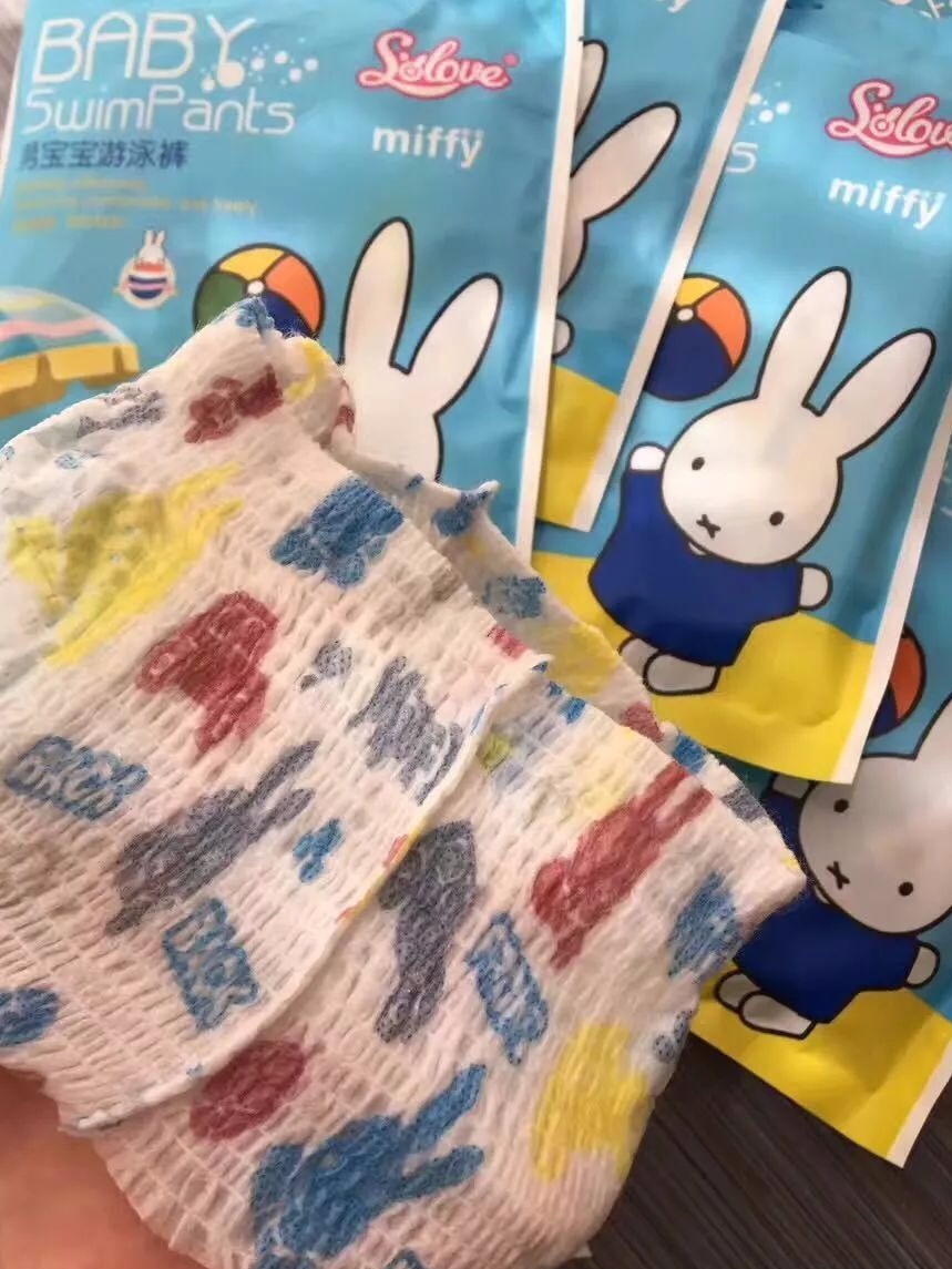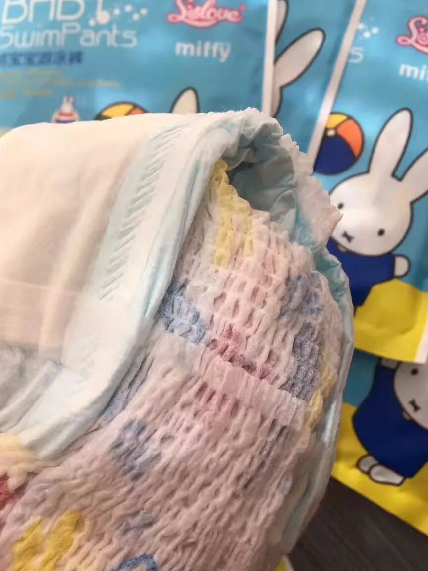 ⑤底膜颜色是生动复杂的。但是底膜不掉色,不染色,不褪色的。市面上各大婴幼儿游泳馆的各种品牌幼儿游泳裤多,但是用世界顶级瑞光机生产游泳裤的就只有我们米菲一家!