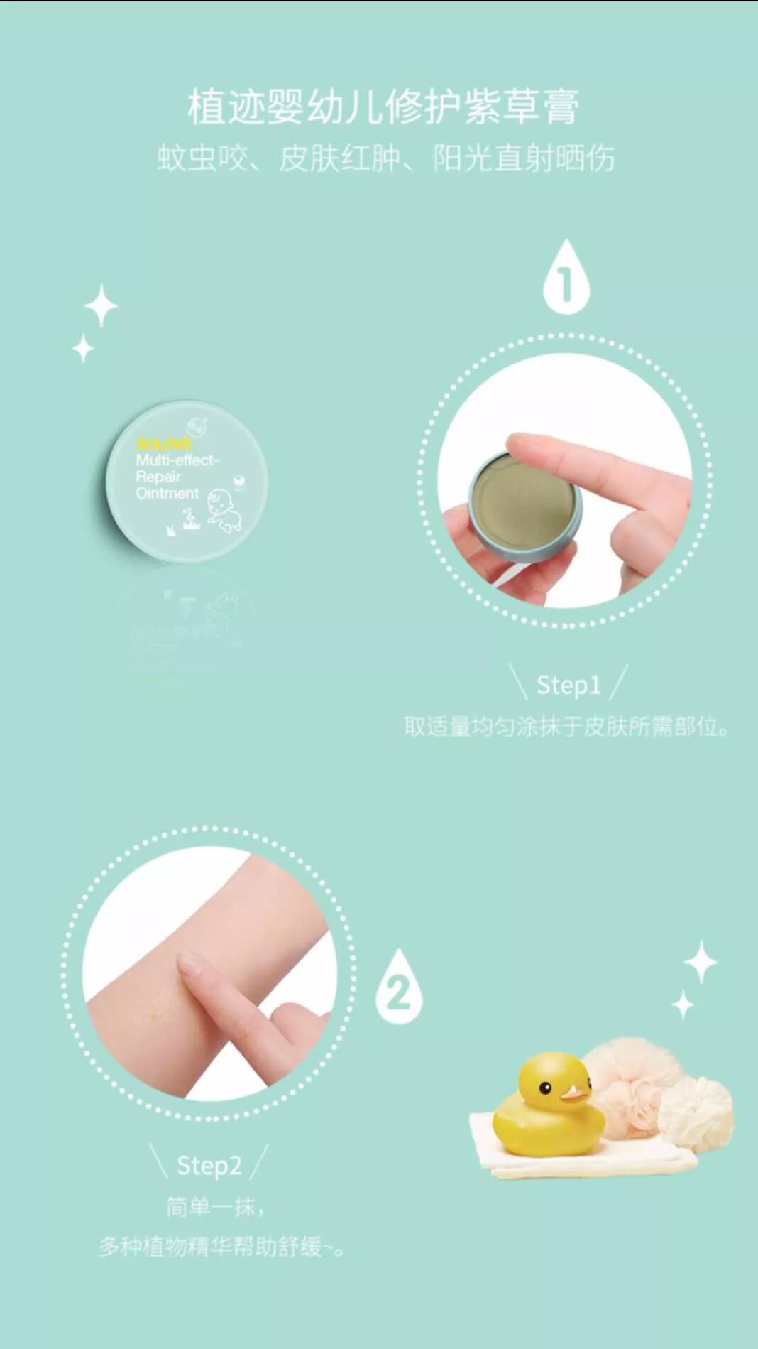 夏日出游,总会遇到宝宝被蚊虫叮咬,游玩时磕碰摔伤,皮肤红肿阳光直射晒伤,随身携带多效修护膏,多种问题一盒搞定,舒缓肌肤“小情绪”守护宝宝娇嫩肌肤。