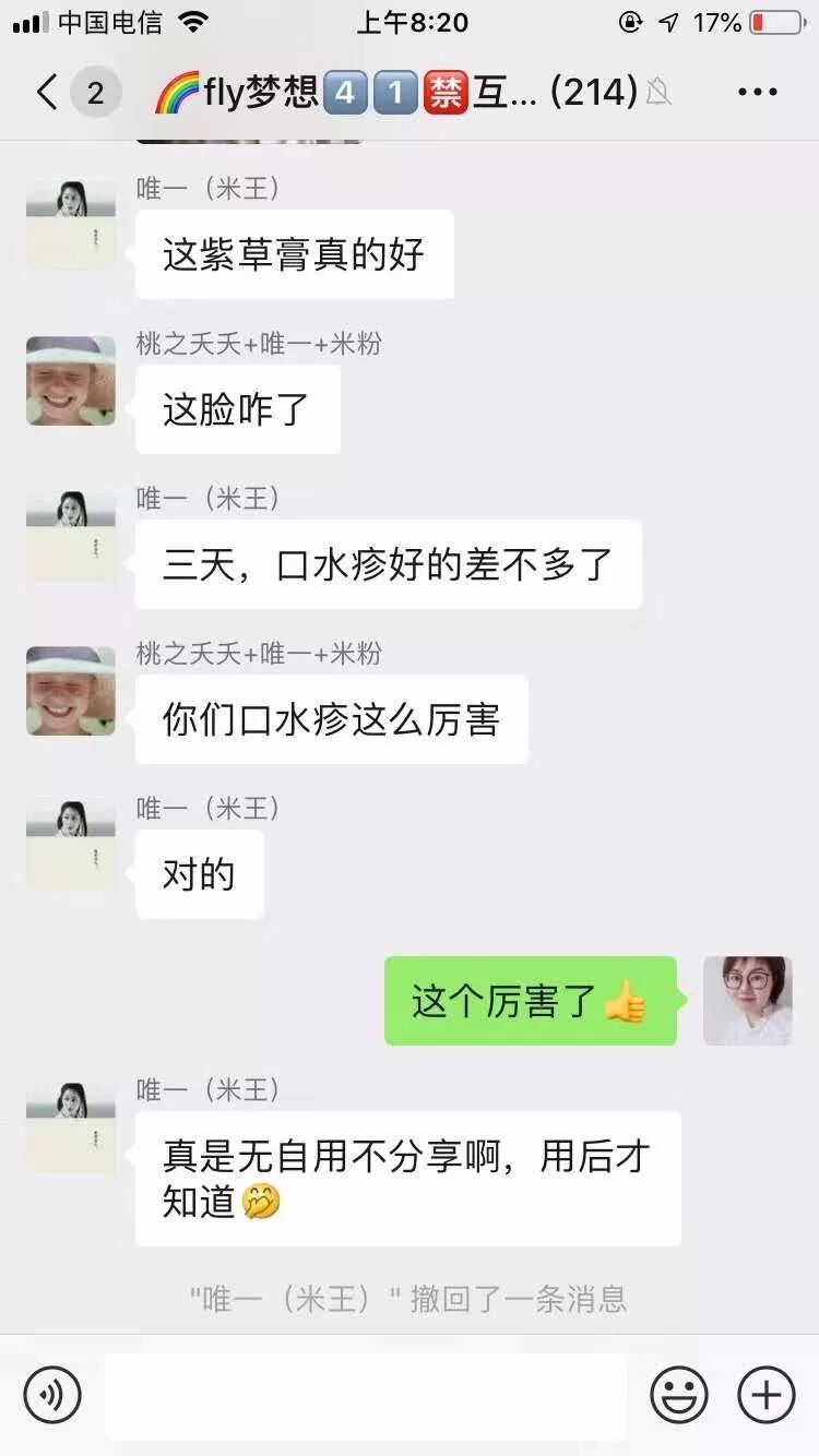 口水疹三天见效宝妈在群里分享