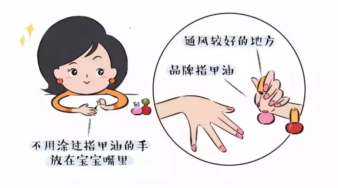 不要将涂抹甲油的手给宝宝玩弄,尤其不能让宝宝吃到嘴里。