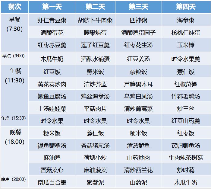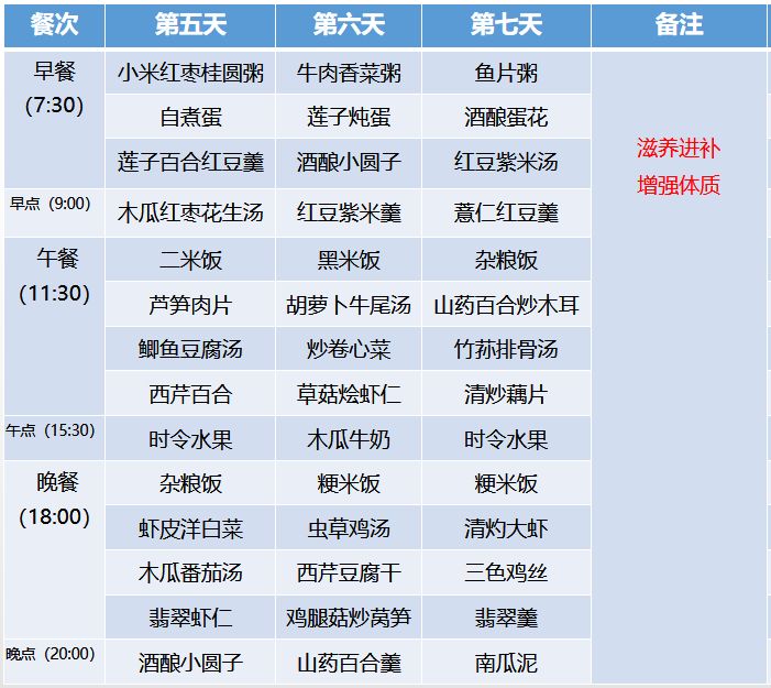 调整人体内微环境、增强体质,促进脏器尽快恢复到健康状态,增强免疫力;通过膳食调理使产后的身体状态、面部光泽良性恢复,增加机体自我修复能力,恢复肌肉弹性。