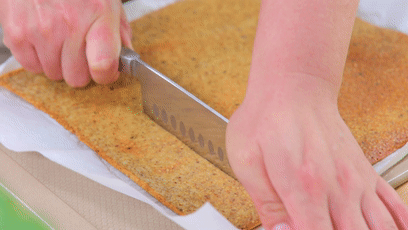 刚烤好的芝麻薄脆如果感觉切着费劲,你可以再晾一会儿,放至温凉后会超级无敌脆!保证一切就碎~