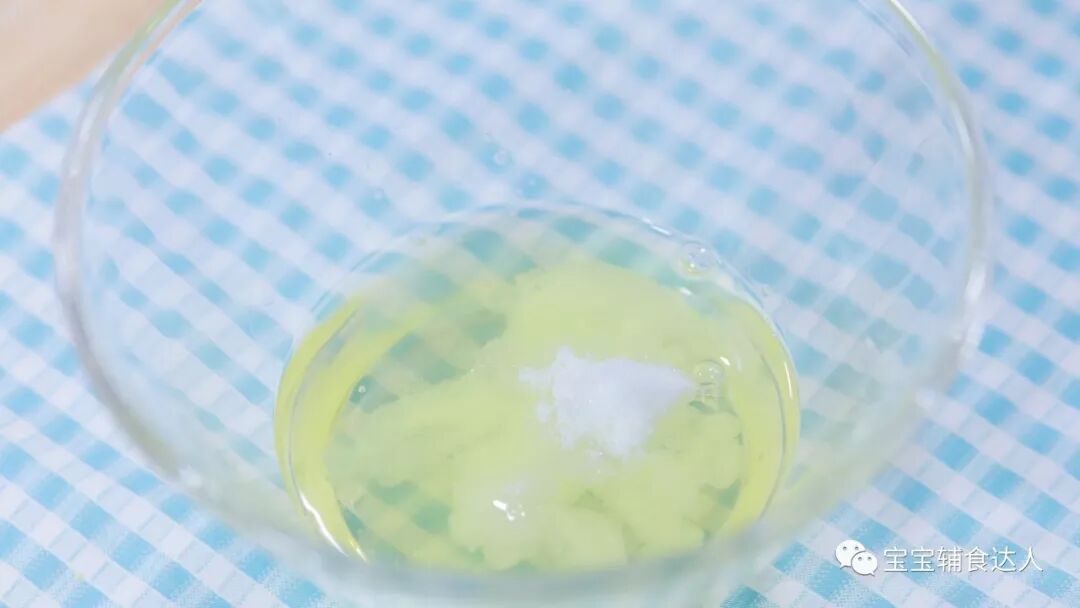 取出一个干净的大碗,在碗中加入蛋清、糖。