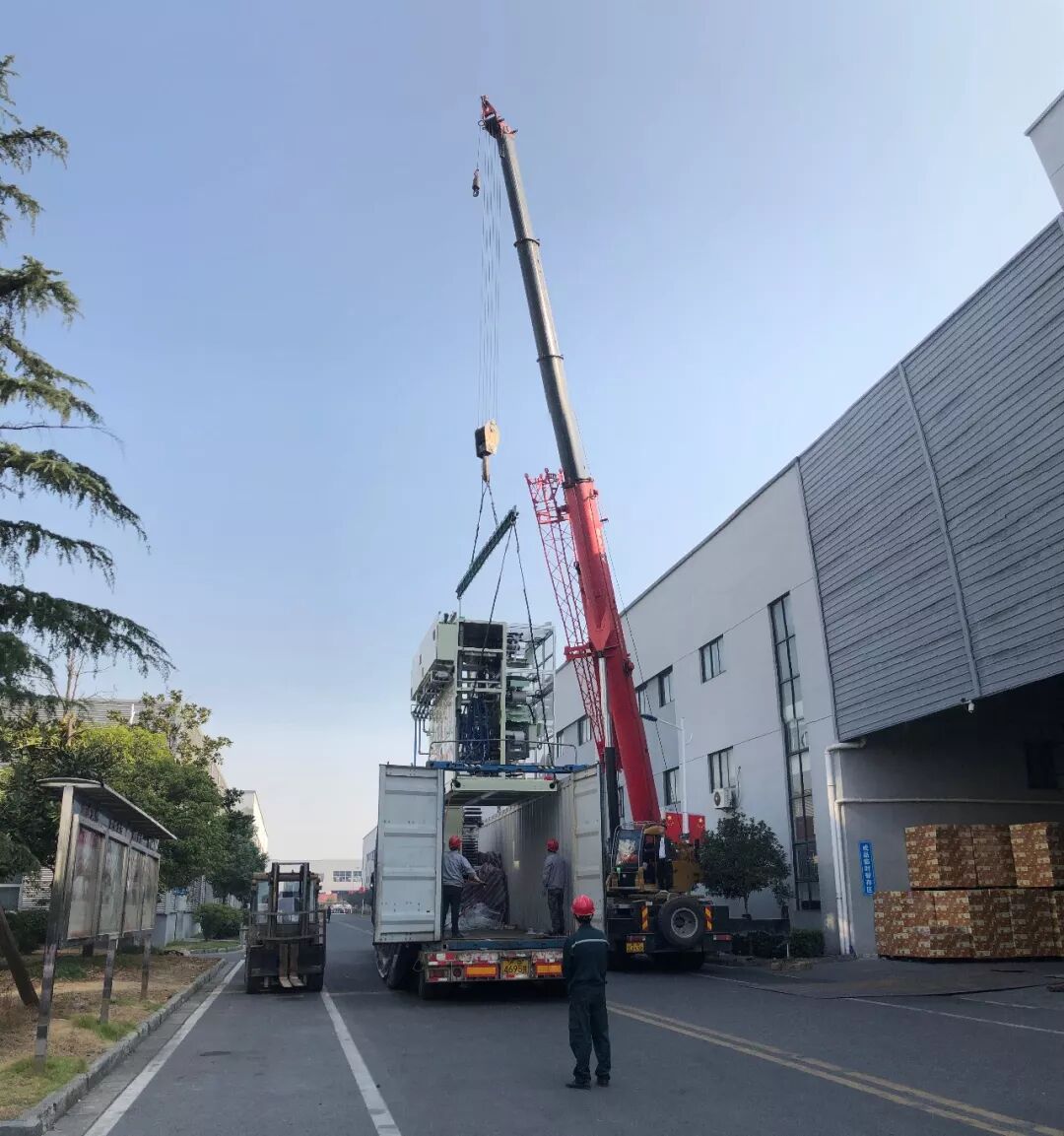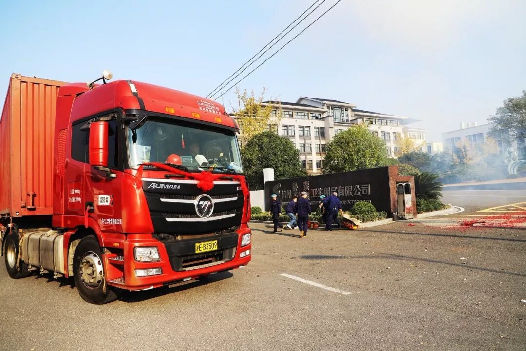 载着目前最快的全智能瑞光拉拉裤生产线的卡车,