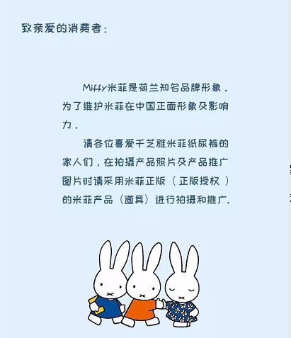米菲是荷兰官方授权给「杭州千芝雅卫生用品有限公司」,授权费三年50万美金!米菲文具、玩具、童装都是授权给实力大公司,然后进行研发和生产。