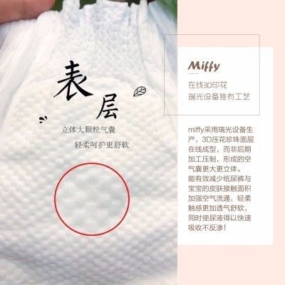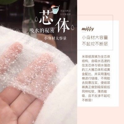所以米菲整体的特点:柔软、薄、大环腰、3D表层、奶嘴型腰扣和柔软前腰贴设计。