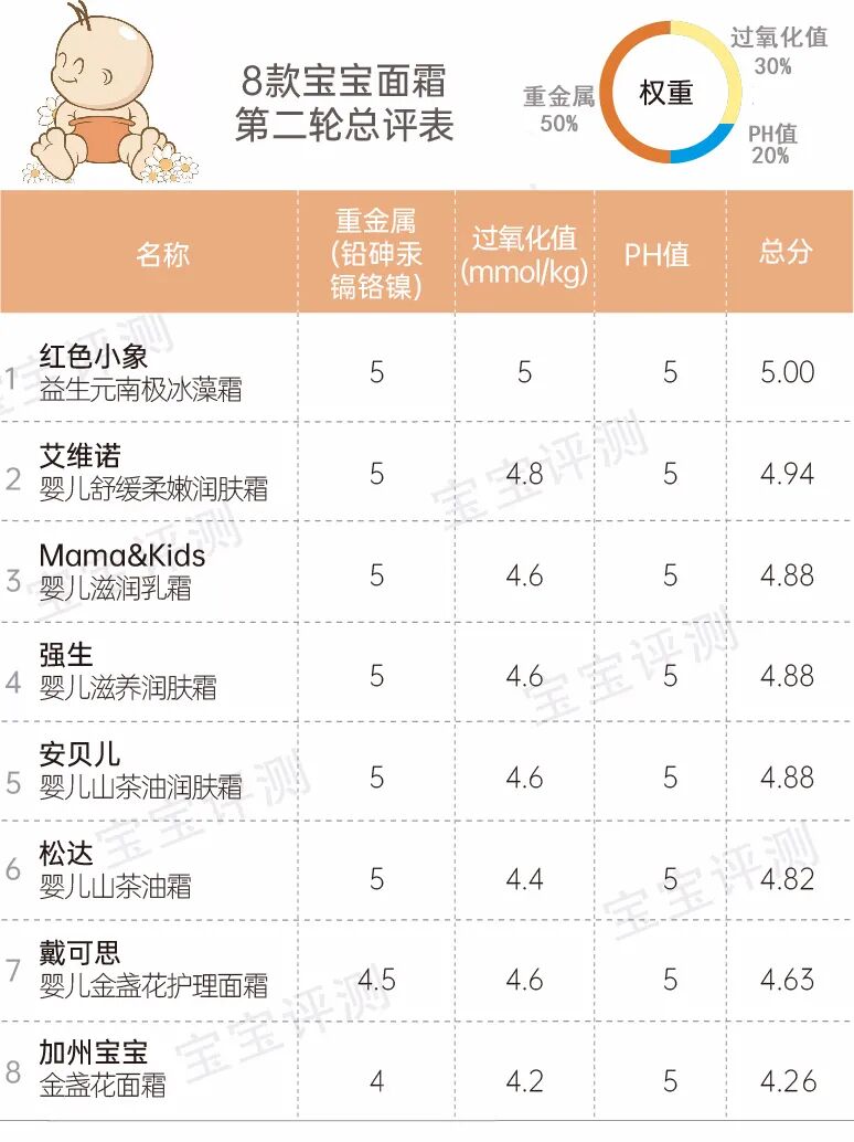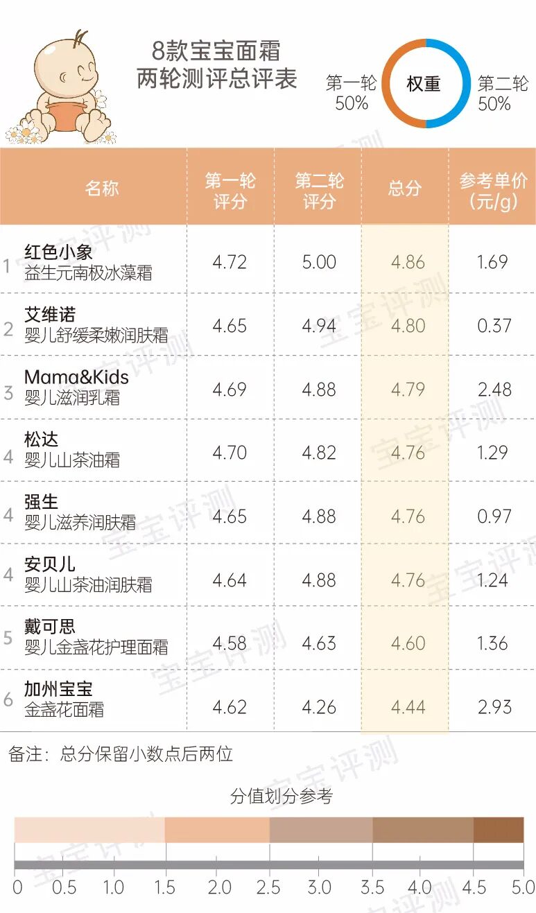 综合两轮评测结果,8款宝宝面霜的最终评分及排名情况如下: