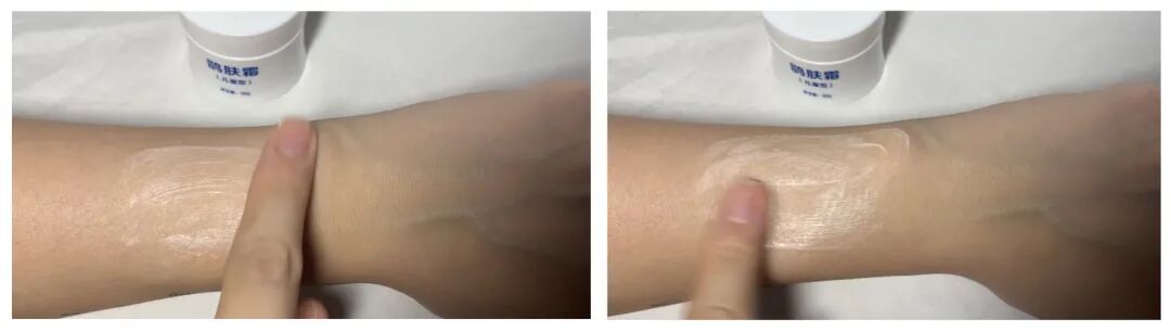 2、不过从皮肤测试来看,本次评测的大部分宝宝面霜延展性都不错,简单涂抹即可均匀涂开。