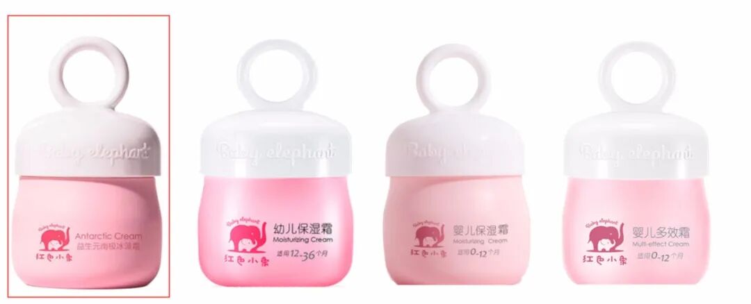 2、在【上篇】的51款评测产品中,包括了红色小象的4款产品,但有3款因为含有香精、丙二醇等需注意成分,没有进入本轮测试,只有一款“益生元南极冰藻霜”因为成分中没有特别需要注意的成分而入选,宝妈们在选择的时候,要注意区分。(图中红框内产品)
