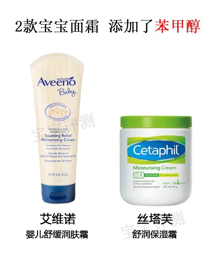 本期评测的51款宝宝面霜中,艾维诺和丝塔芙2个系列添加了苯甲醇,属于“欧盟26种易致敏香精”之一。