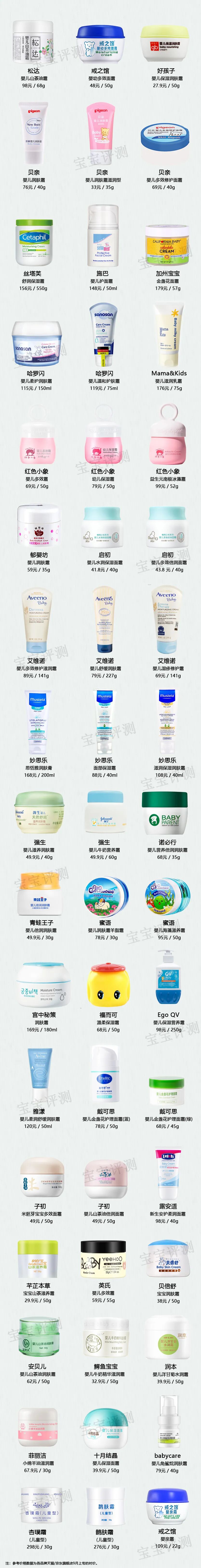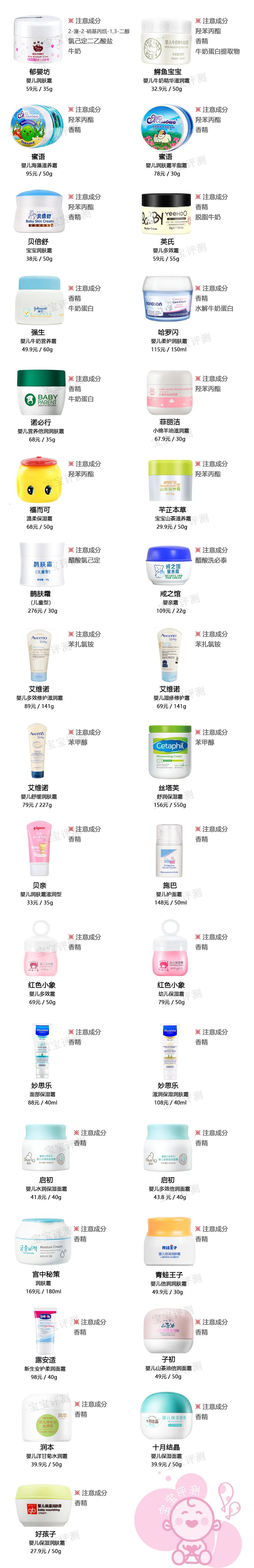 51款宝宝面霜评测(上):敏感肌肤需注意这33款。