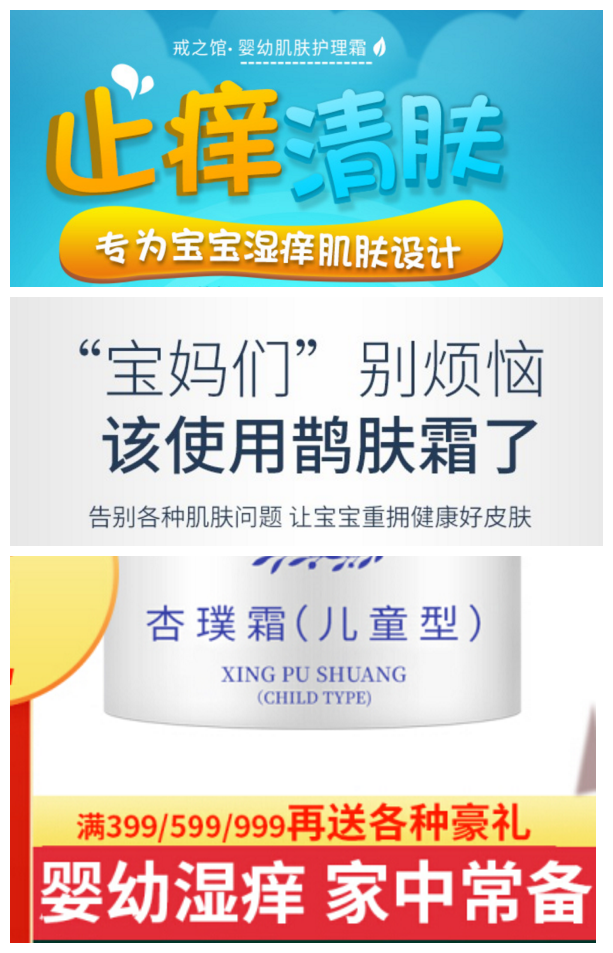 这类“消”字号宝宝面霜,大多宣传针对湿疹等肌肤问题,往往见效较快,深受一些宝妈的喜爱。