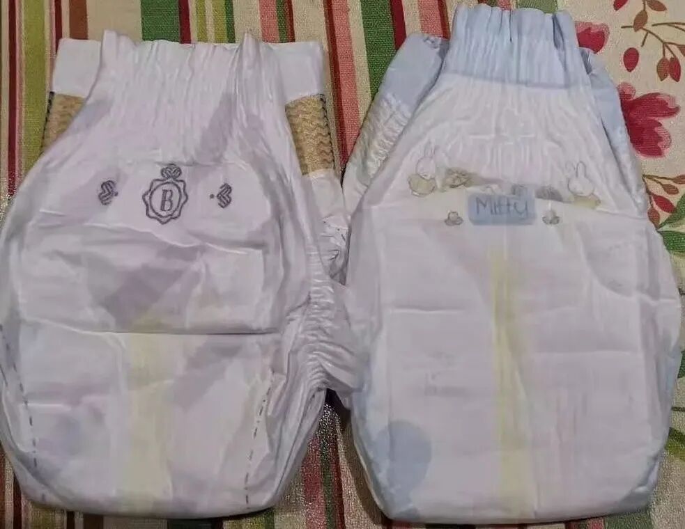 一样的外形,一样的大小,一样的厚度,甚至尿不湿表面压花都一样!也都是凸起的压花,和米菲的压花也很相似~