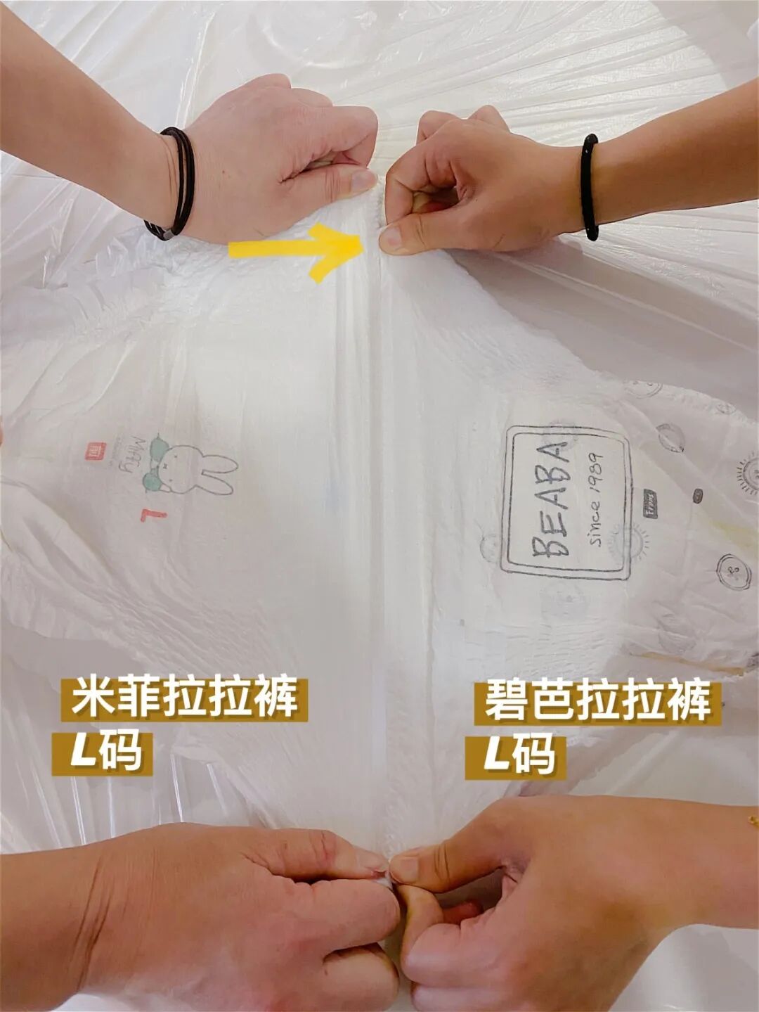 那我们就来对比下,米菲L码对比四种品牌不同码数