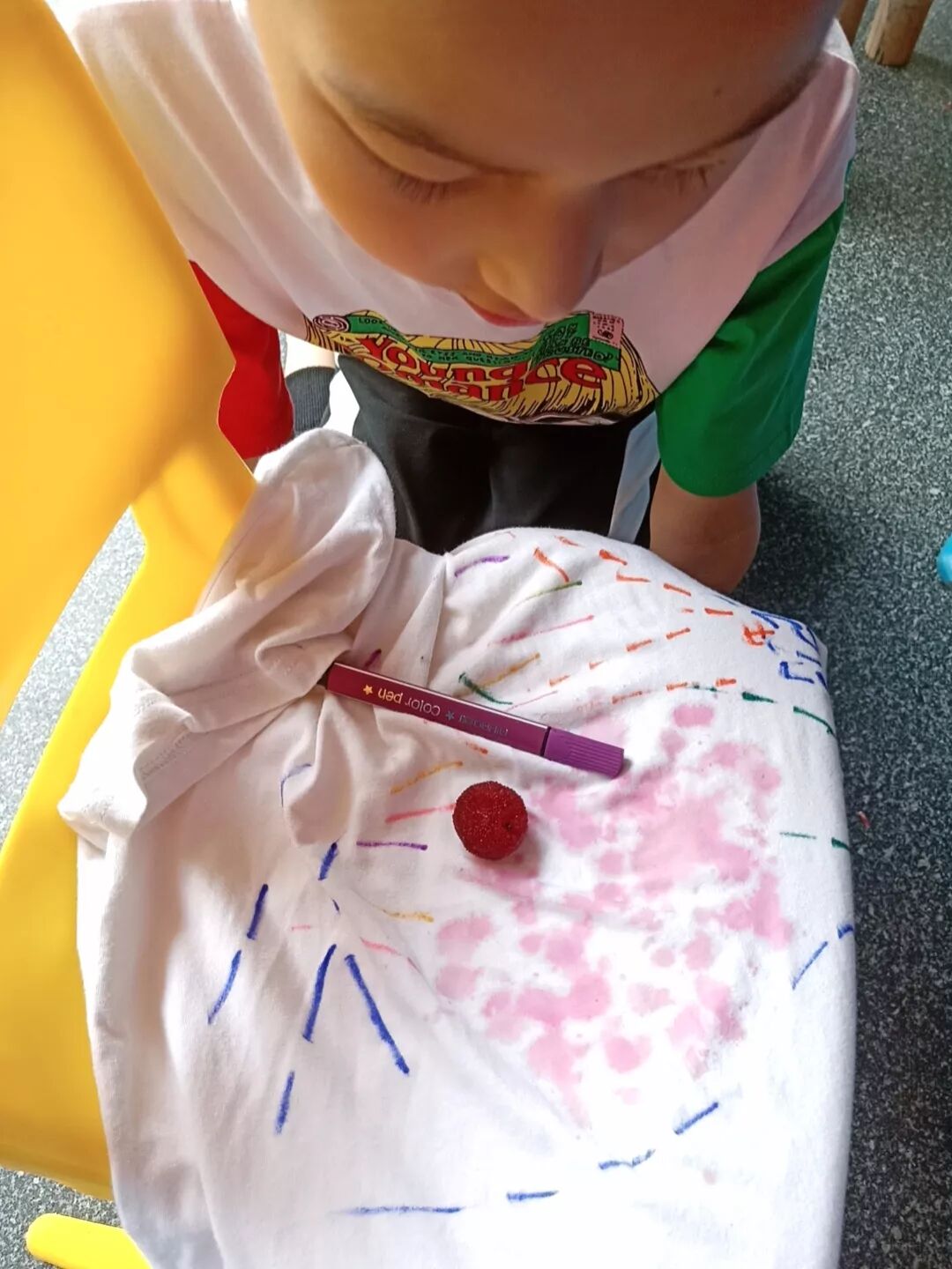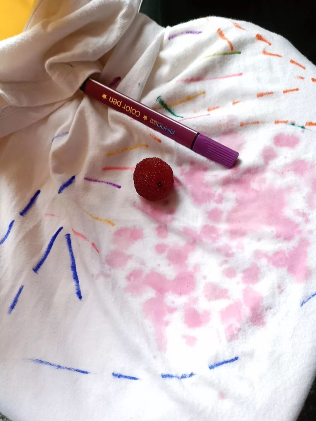 爱玩笔的宝宝会把彩色笔画在衣服上