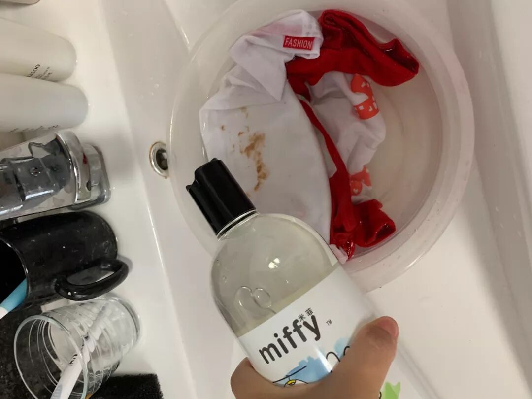 有颜色瓶装的洗衣液里面都还有酶,而酶的有效期只有3~9个月。而且很多有颜色的洗衣液里面的液体都有一些浑浊。我们米菲洗衣液都是非常清澈的,而且是浓缩型,不用太大的包装瓶。清洁能力非常强,而且非常温和,男士可以用来当沐浴露。