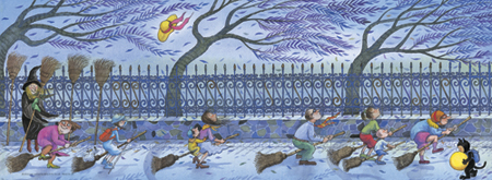 举个例,在《灰袍奶奶和草莓盗贼》这本书里,最后一副画面是这样: