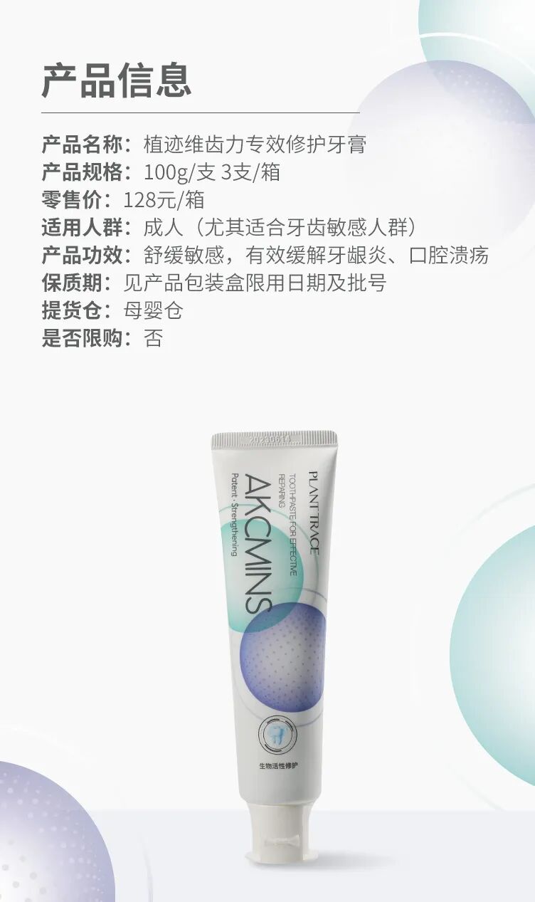 (一)植迹维齿力专效修护牙膏