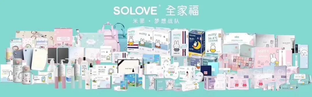 2015年,SOLOVE引入荷兰知名动画形象米菲代言,并授权千芝雅生产SOLOVE米菲系列纸尿裤;2016年,SOLOVE米菲系列纸尿裤开启了中国新零售市场的销售;2017年SOLOVE推出了纸尿裤/训练裤/游泳裤/夜用训练裤、SOLOVE亲呼吸系列卫生巾、SOLOVE婴幼儿全棉柔巾、SOLOVE防溢乳垫;2018年,SOLOVE推出了小猪佩奇系列柔纸巾,米菲牛仔系列纸尿裤/训练裤、 米菲隔尿垫。