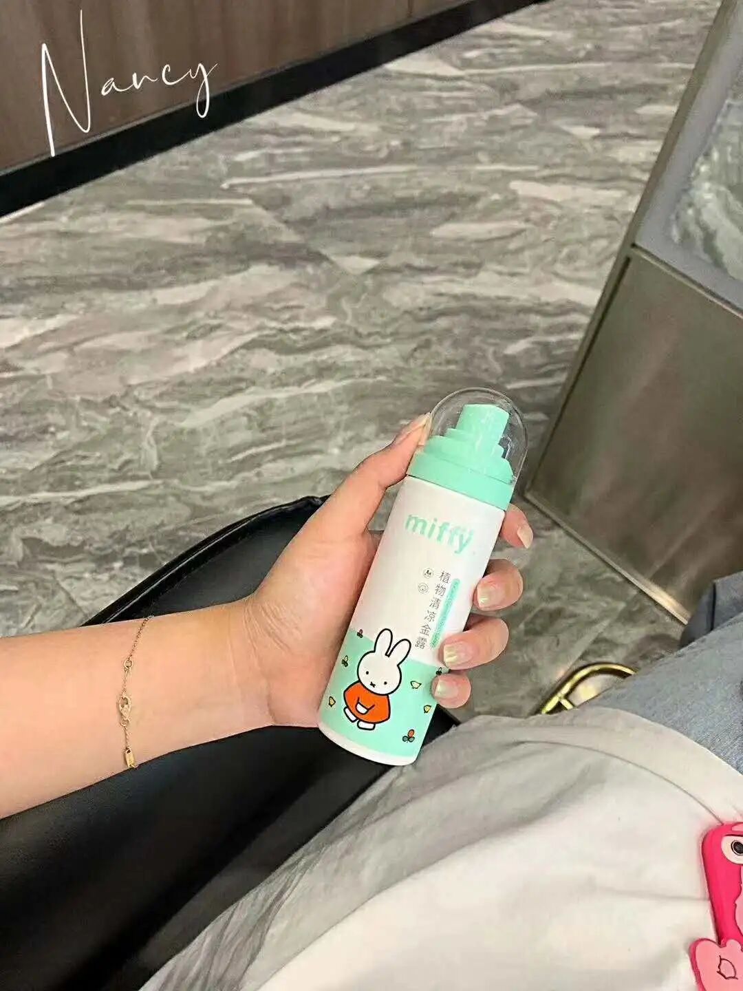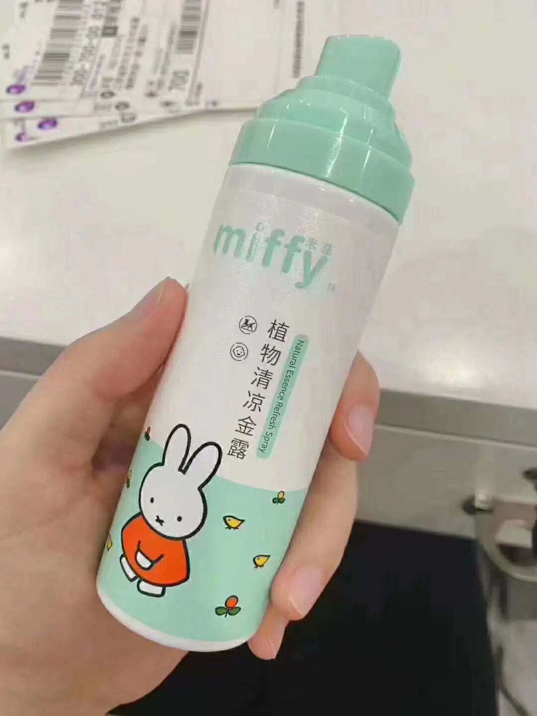 带儿子出门前给儿子喷了米菲的驱蚊喷雾