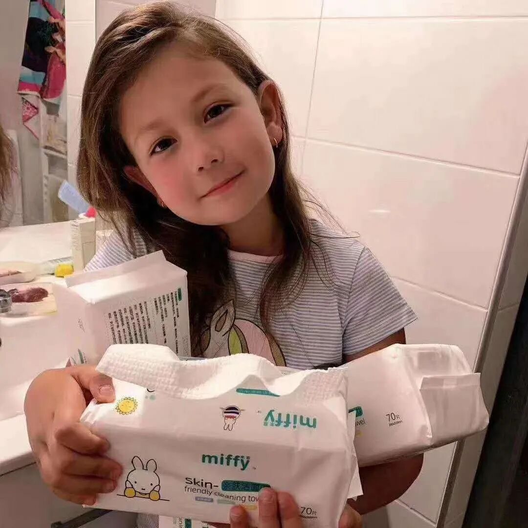 用米菲的洁面巾洗了个脸