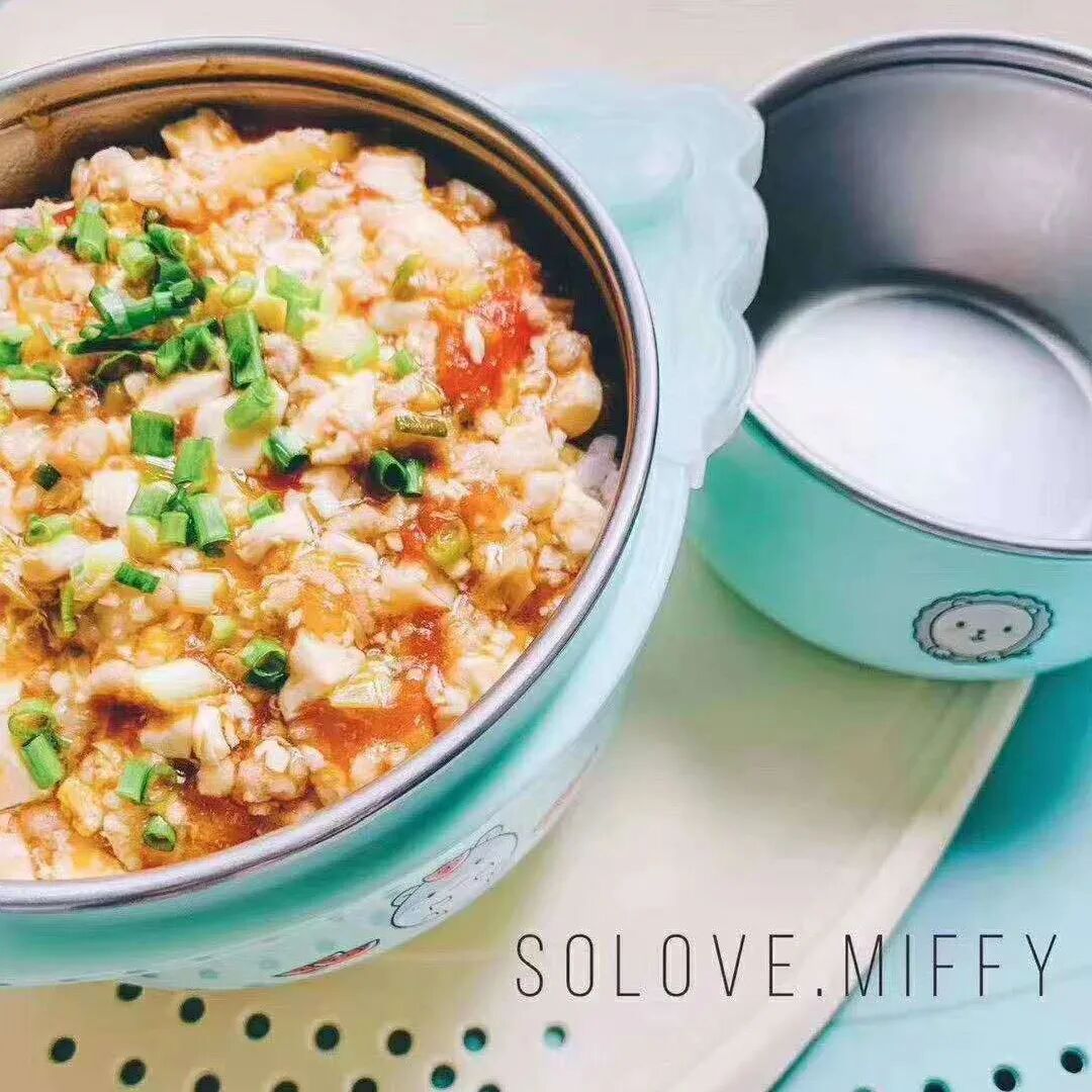用米菲的保温碗盛给儿子吃