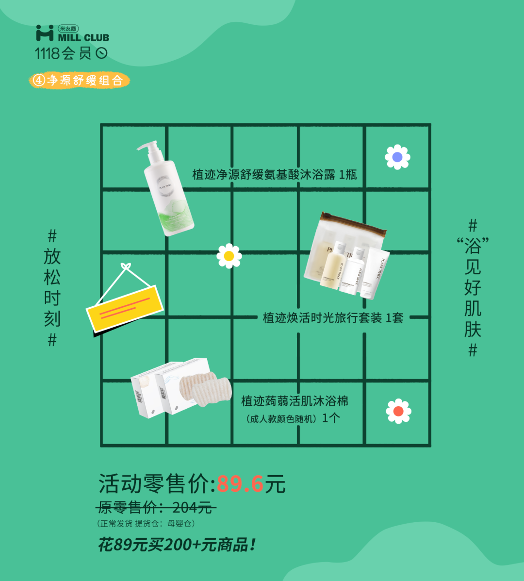 植迹身体乳+洗护旅行装+蒟蒻沐浴棉