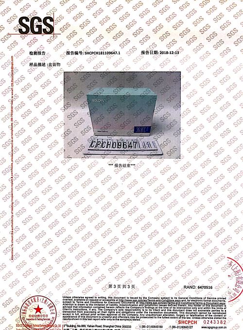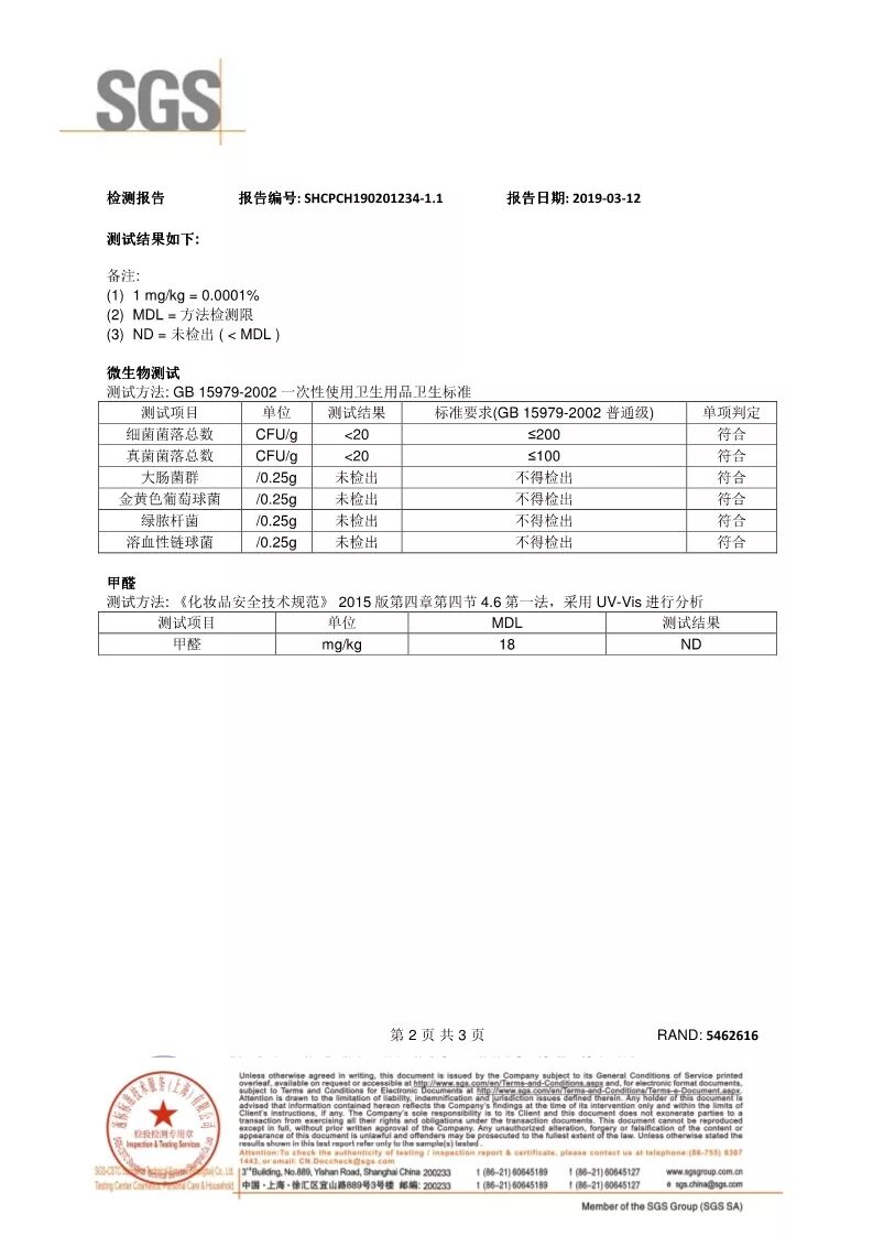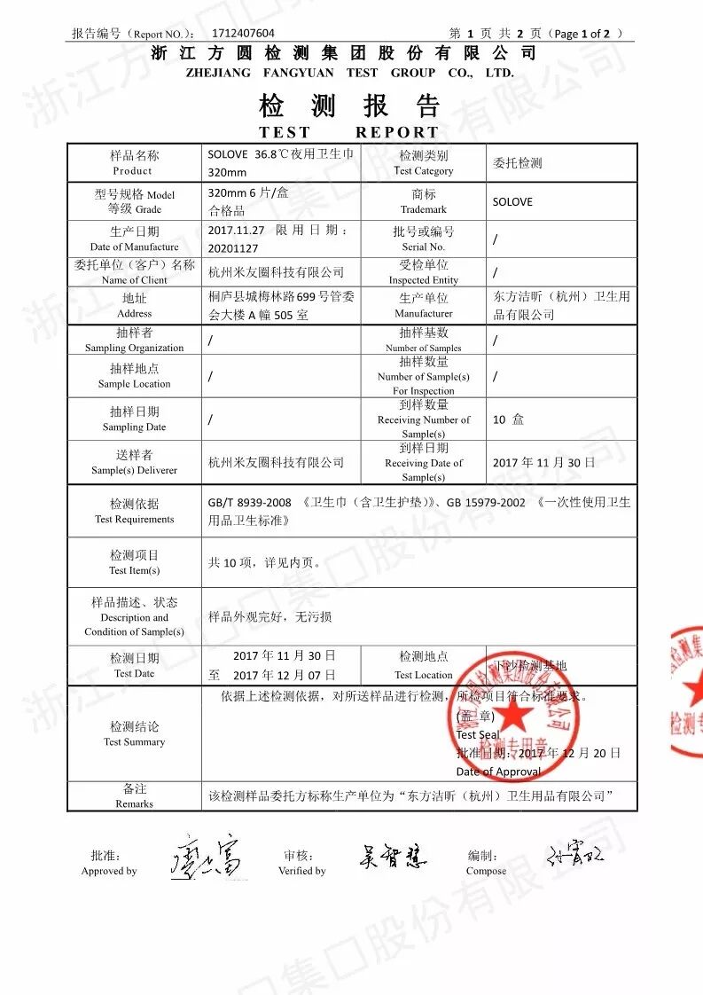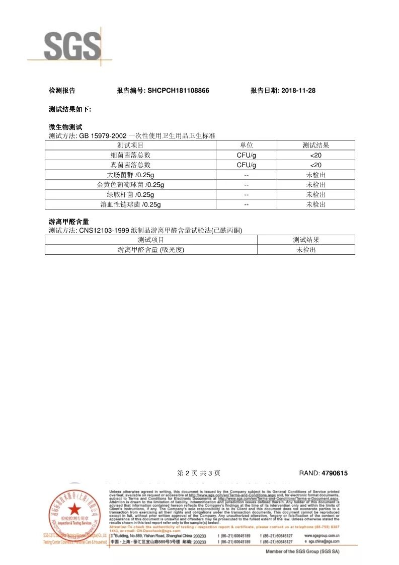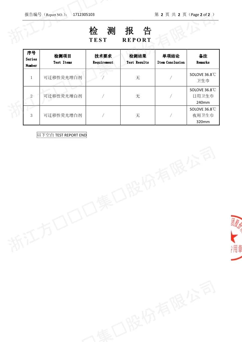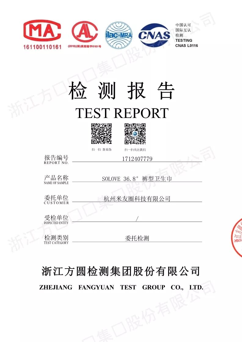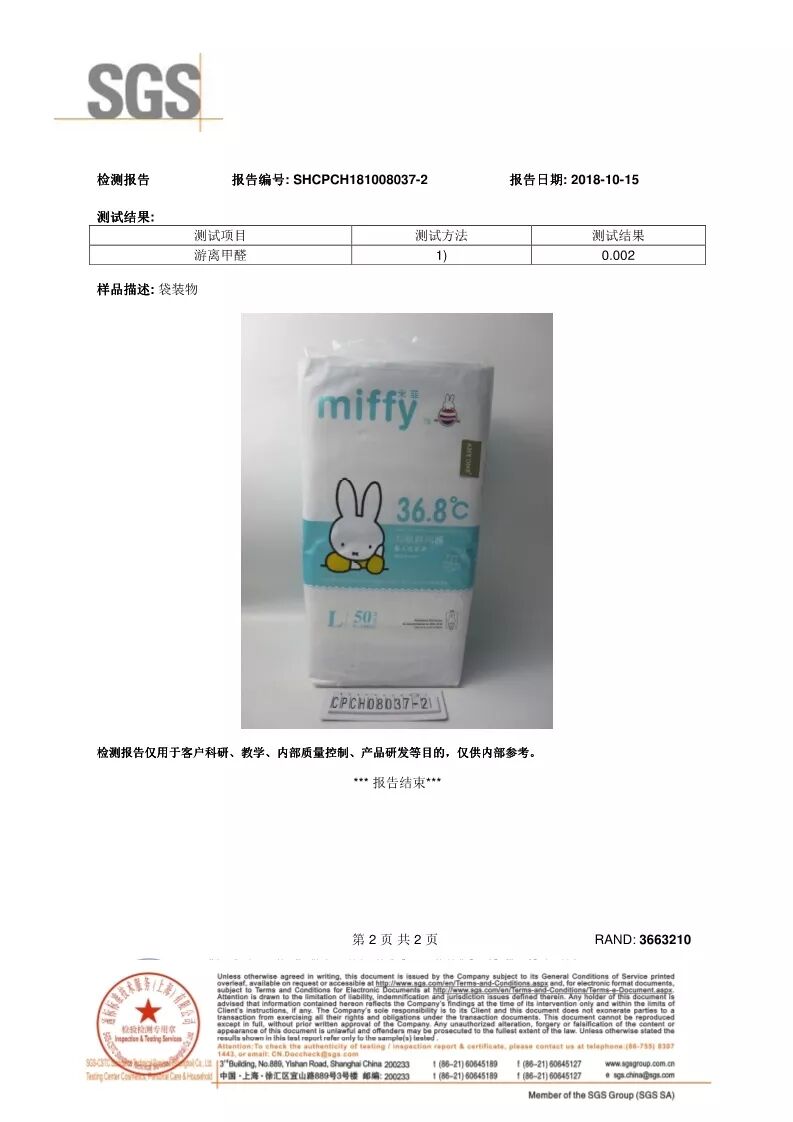 ② SOLOVE米菲婴儿纸尿裤甲醛检测报告