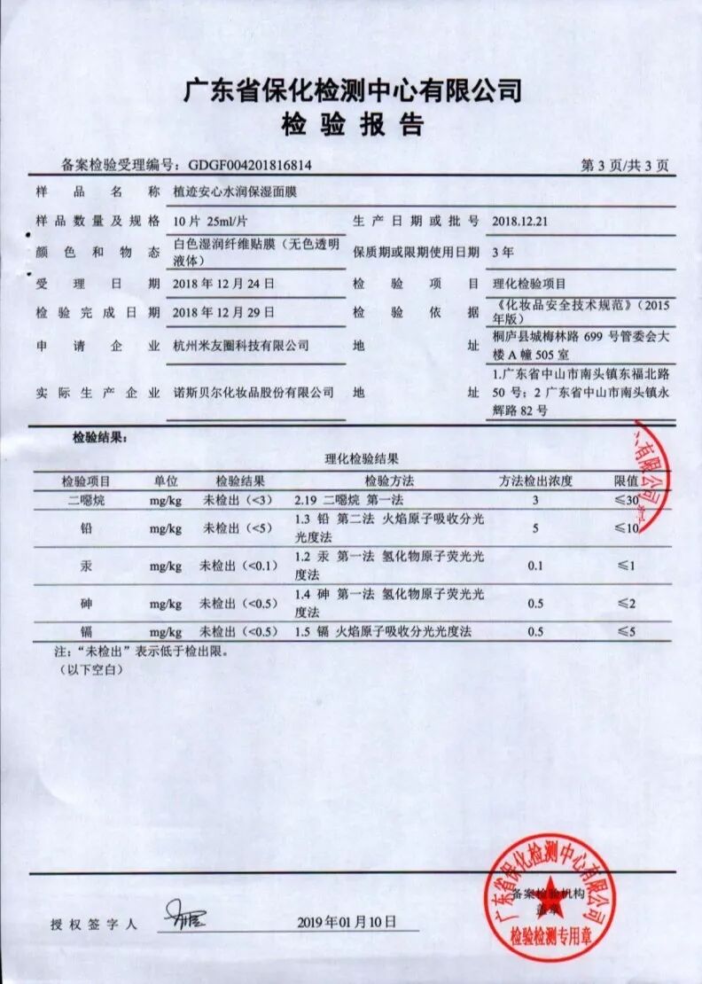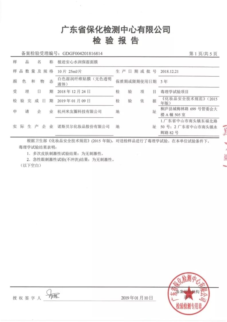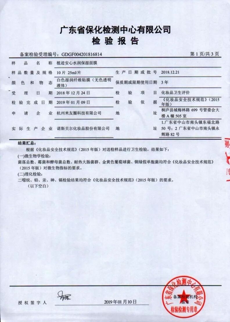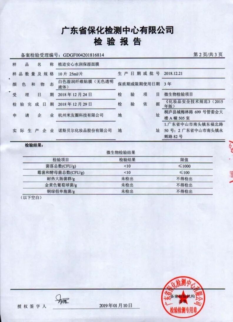 杭州米友圈(米菲的运营公司)向第三方权威检测机构