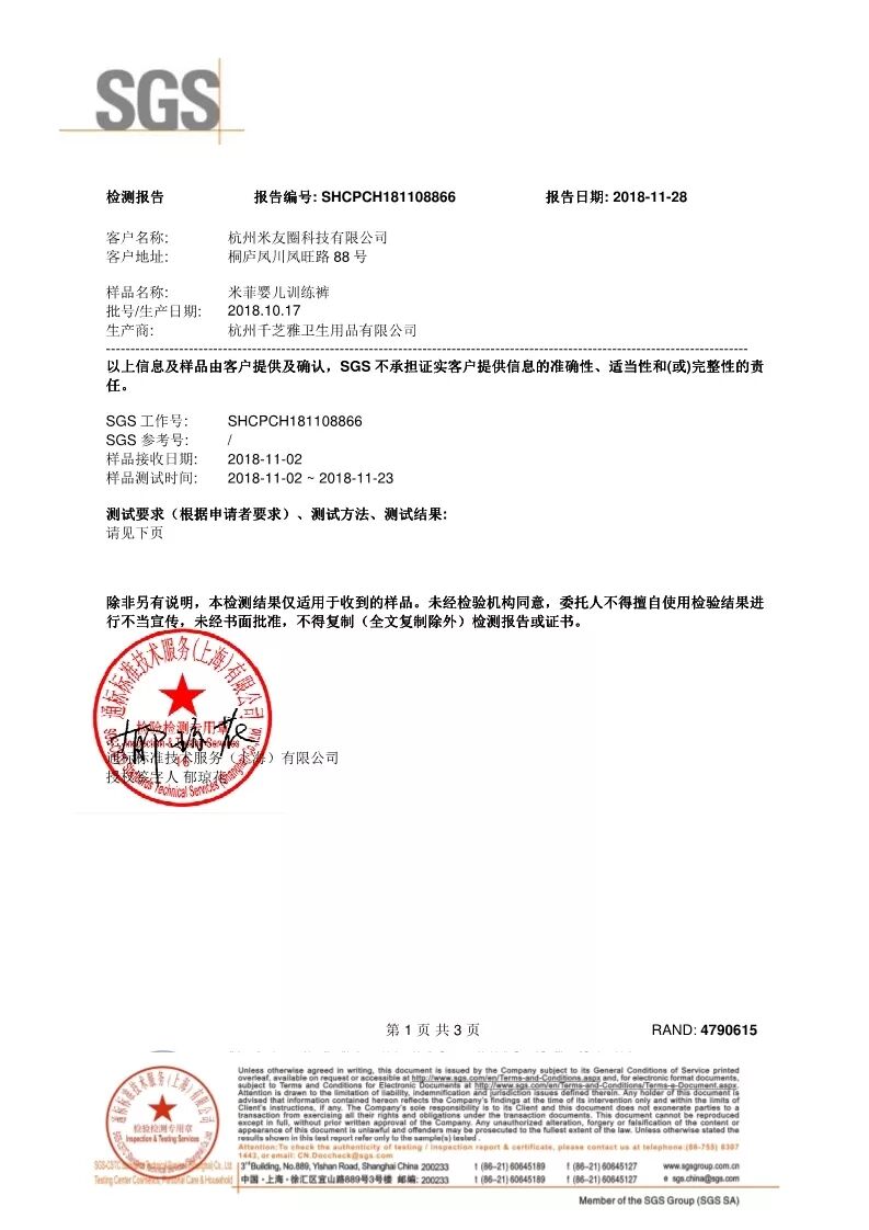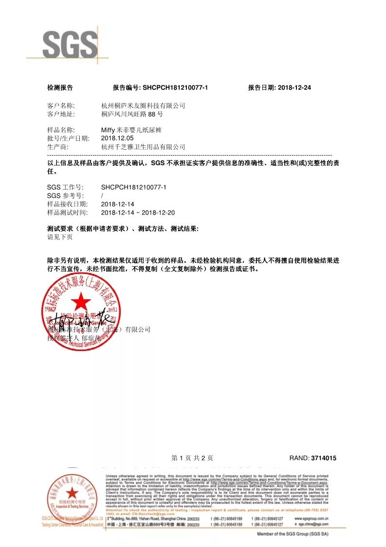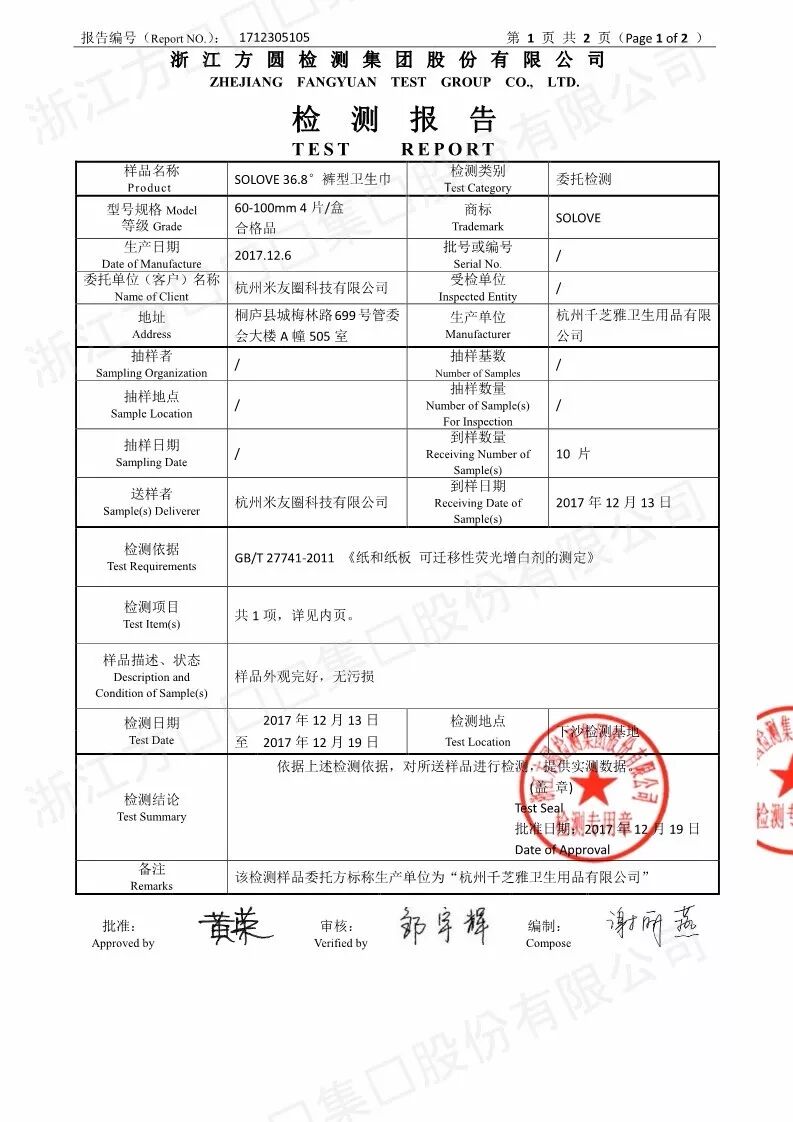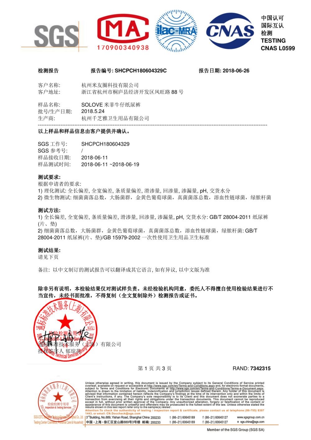 1.SOLOVE米菲婴儿纸尿裤检测报告