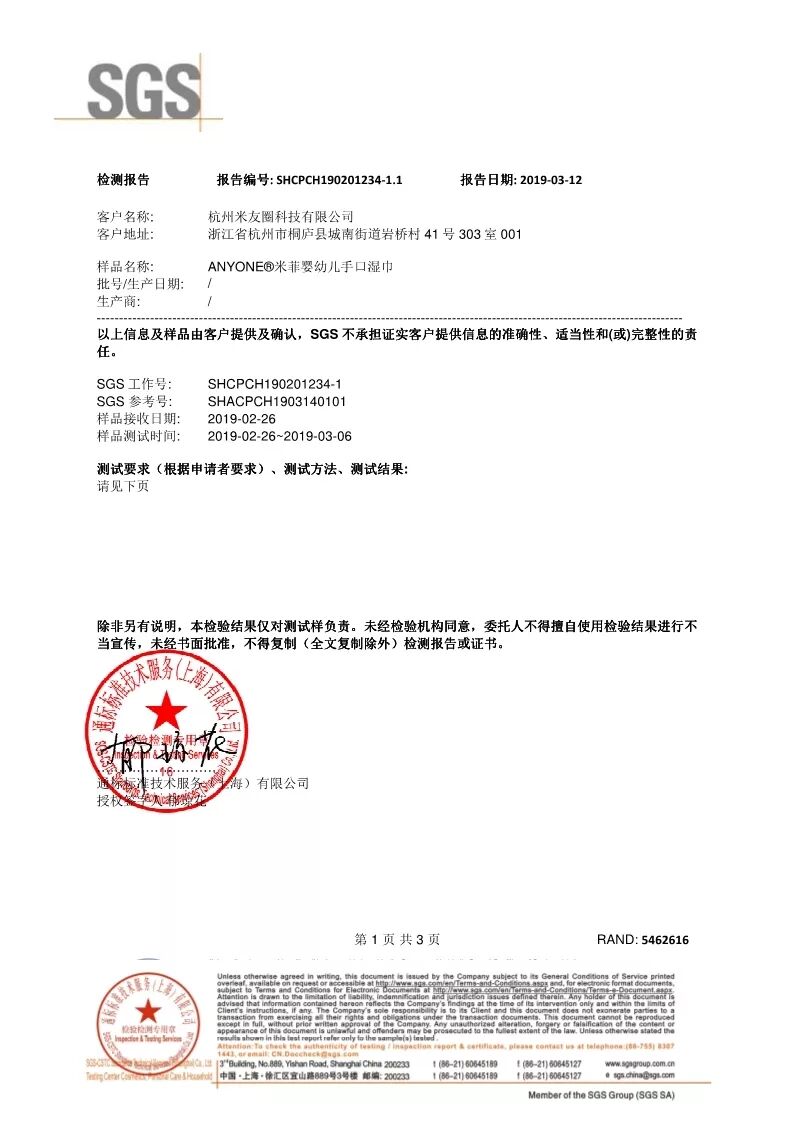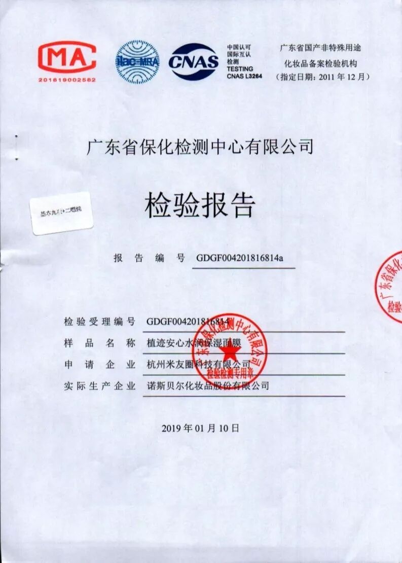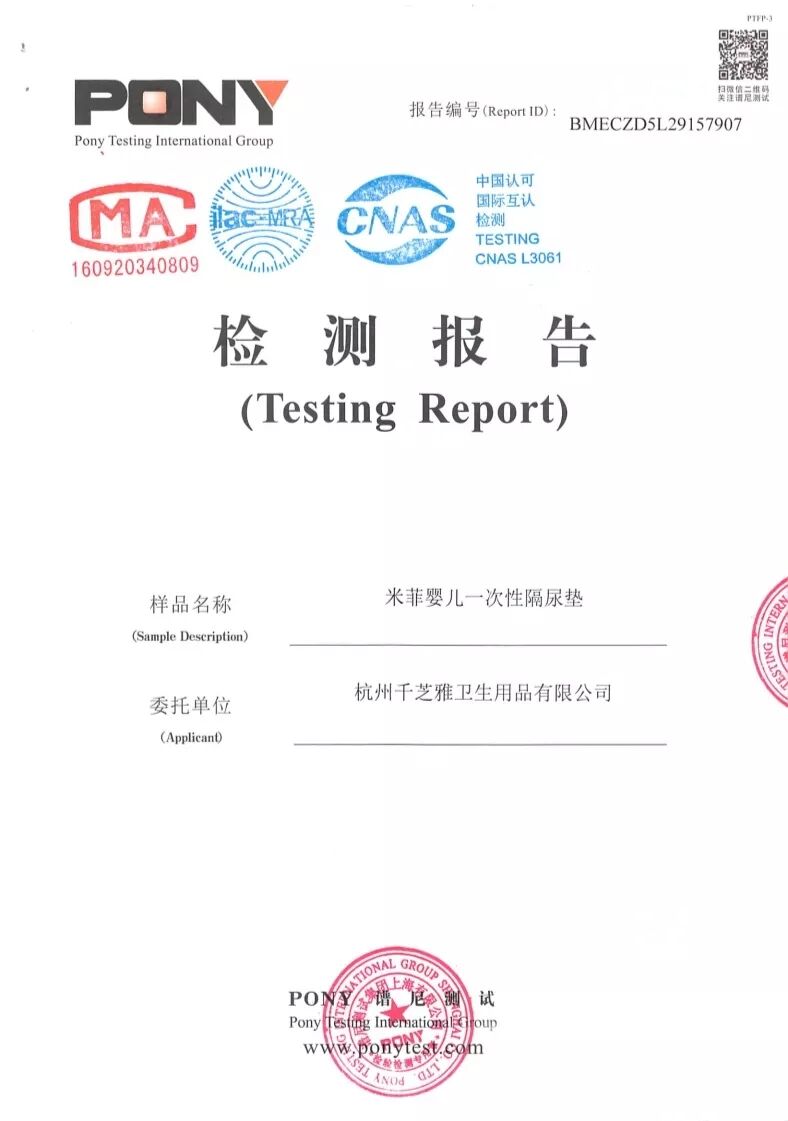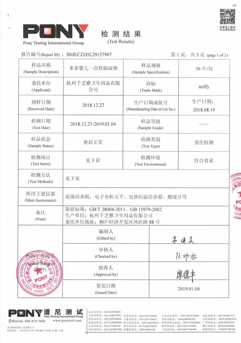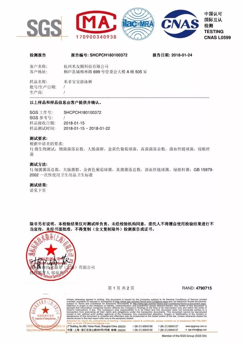 米菲系列产品检测证书大全,做到让宝宝用的舒心,让妈妈放心~