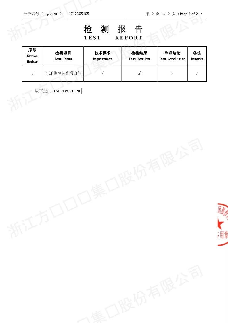 荧光增白剂 荧光增白剂的潜在风险让不少父母心有担忧。不过在本次检测中,均未检出「可迁移性荧光增白剂」,父母不必担心。