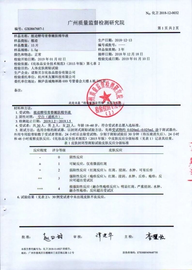 ③ 植迹酵母青春嫩肤精华液-斑贴
