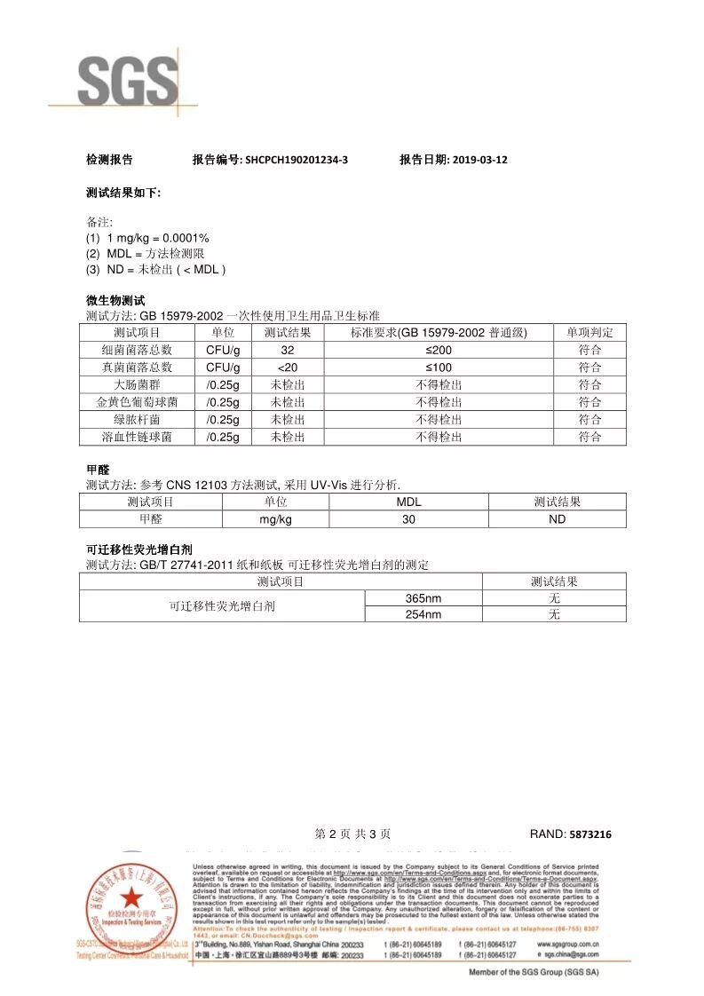 米菲干湿两用棉柔巾甲醛+荧光剂+微生物检测报告