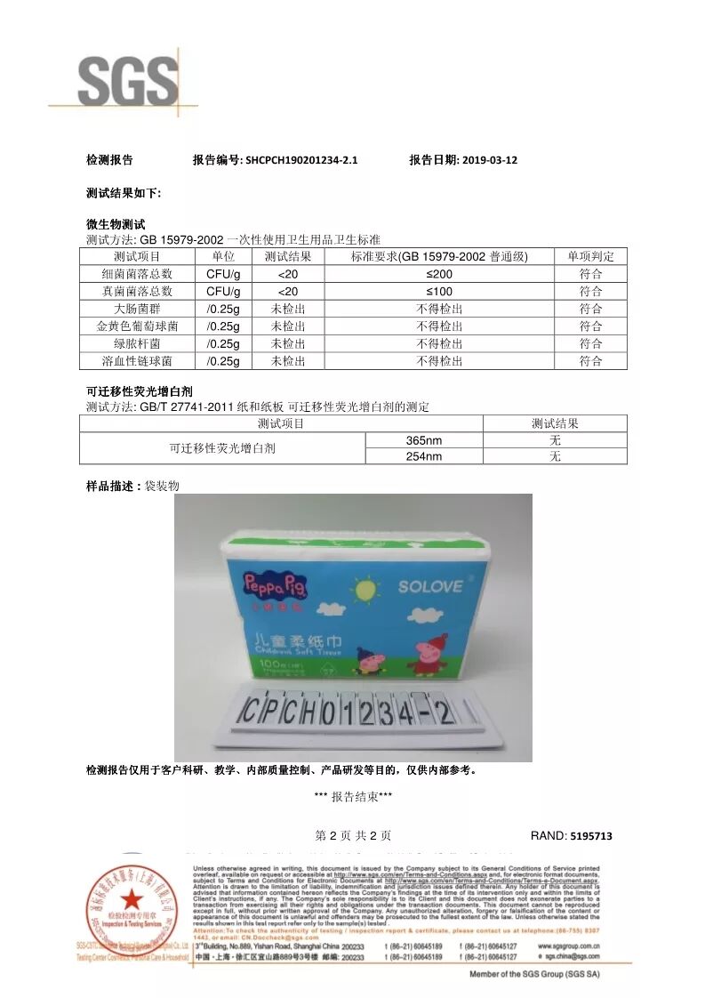 8.SOLOVE米菲小猪佩奇柔纸巾检测报告