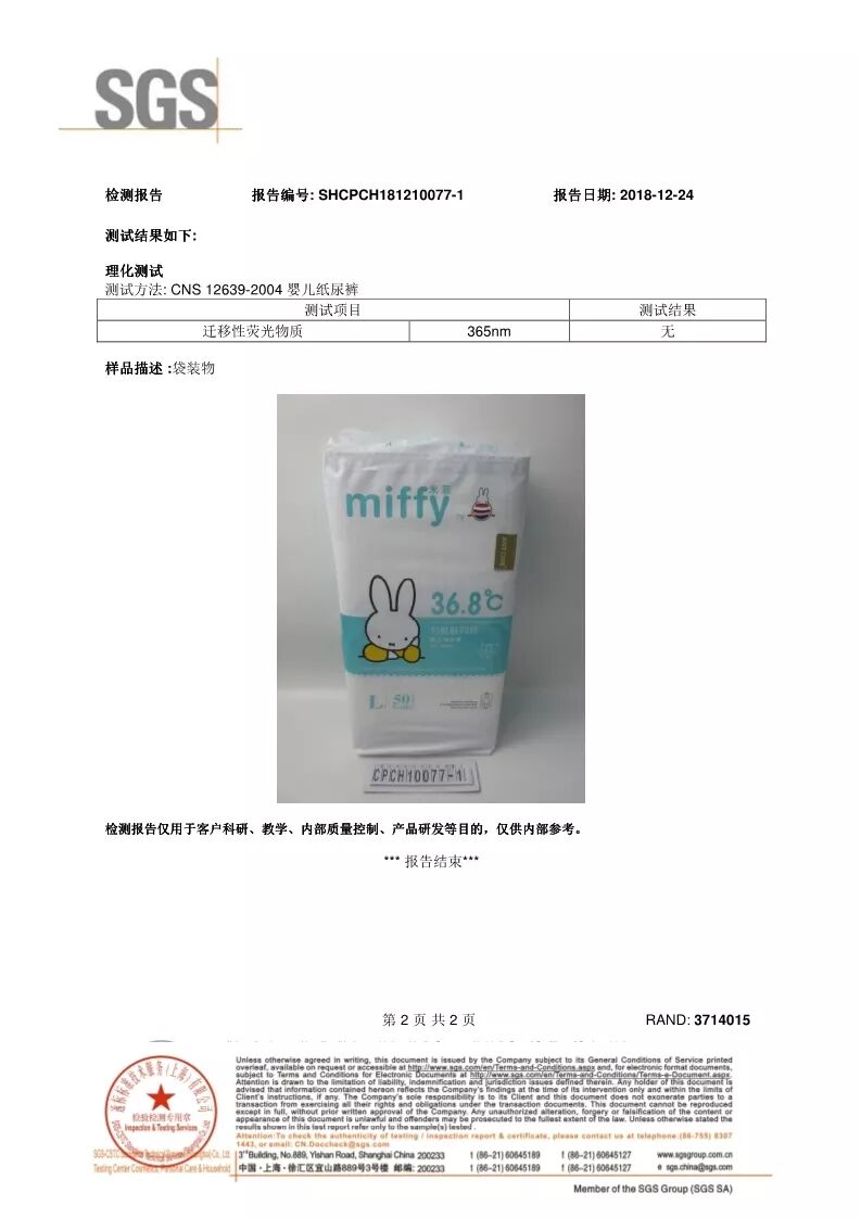 ① SOLOVE米菲婴儿纸尿裤荧光剂检测报告
