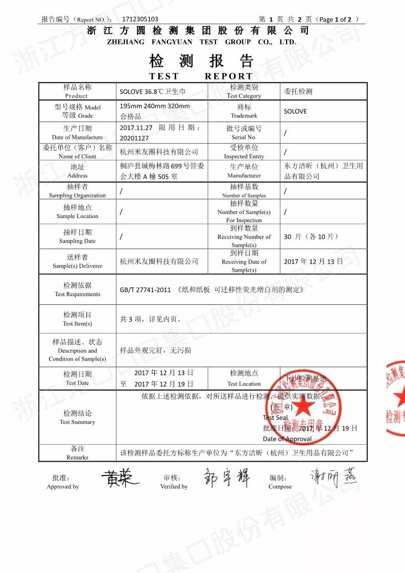 7.SOLOVE米菲干湿两用棉柔巾检测报告