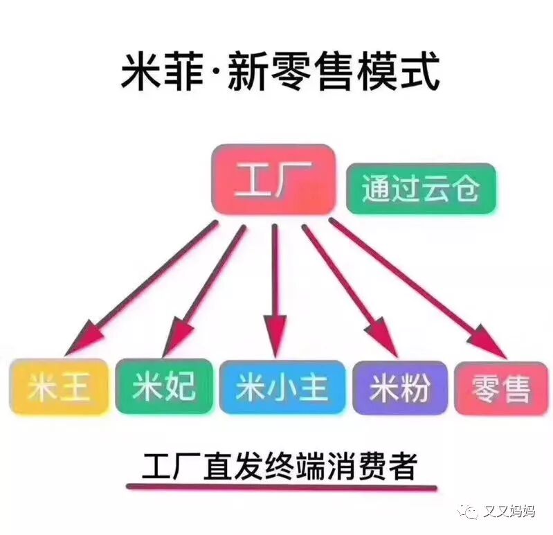 米菲的新零售代理模式为四级代理,会员等级分为米粉、米小主、米妃、米王四个层级。