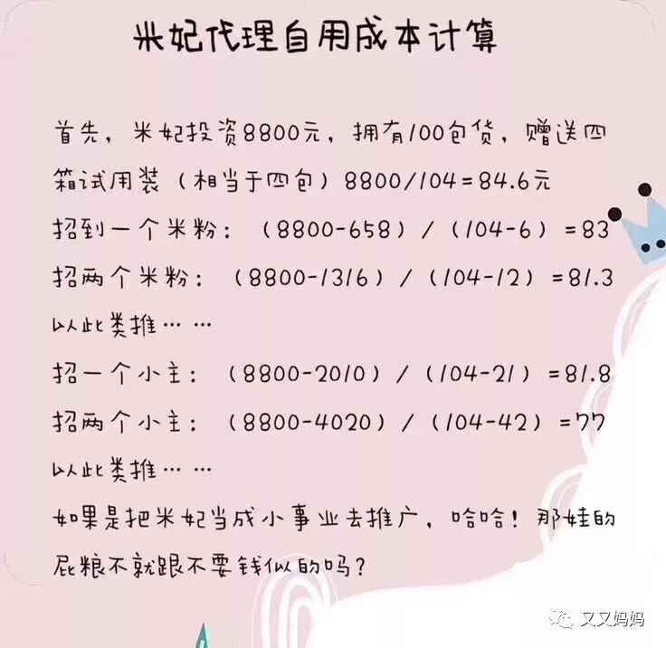 米妃在整个代理政策中算是比较高的级别,很多人一听就觉得好贵啊!但是真的贵么?