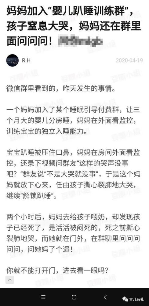 一位新手妈妈疑因在微信群里“解锁小儿趴睡”,结果3个月的宝宝窒息身亡……