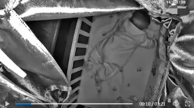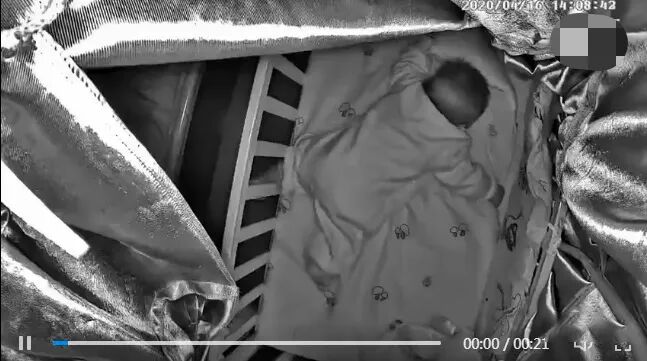 在宝宝哭声停止后,宝妈将监控视频发到群里问群友:
